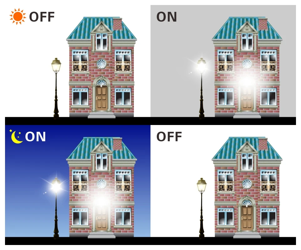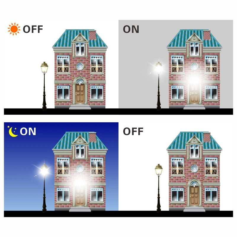 Это работает правильно. Хотя мигает перед включением или выключением, что-то, что я не понимаю в течение 2-3 минут. Но потом он работает всю ночь и выключается, когда солнце.
