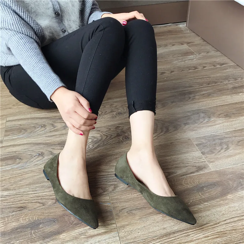 Женские мокасины на плоской подошве с острым носком, удобные повседневные однотонные туфли на плоской подошве, армейский зеленый серый цвет, 41 43