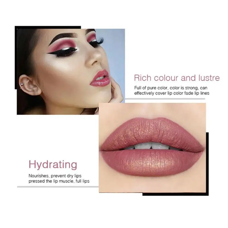 Помада для макияжа, блестящая металлическая перламутровая губная по...
