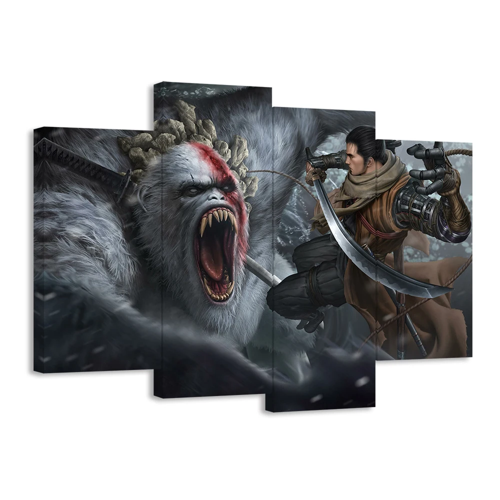 4 панели фантазийное искусство меч ниндзя картина Картина SEKIRO тени дважды видеоигры Искусство Декор стен картины