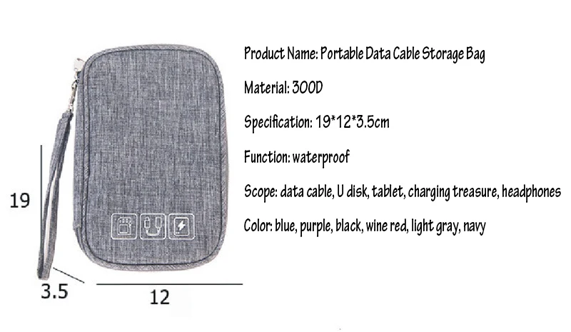 Портативный кабель сумка для хранения цифровой USB гаджет Органайзер провода зарядное устройство косметичка на молнии power Bank с чехол для айпада