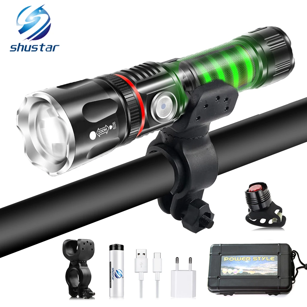 Посылка A: 1 x светодиодный фонарик Посылка B: 1 x светодиодный фонарик + 1 x велосипедный зажим Посылка C: Светодиодный фонарик-1 шт., велосипедный зажим-1 шт., аккумулятор 18650-1 шт. Посылка D: Светодиодный фонарик-1 шт., велосипедный зажим-1 шт., аккумулятор 18650-1 шт., зарядный usb-кабель-1 шт., разъем USB-1 шт. (EU/US/AU/UK) Посылка: 1 x светодиодный светильник-вспышка + 1 x велосипедный зажим + 1 x аккумулятор 18650 + 1 x usb-кабель для зарядки + 1 x usb-разъем (EU/US/AU/UK) + 1 x Задний светильник Посылка F: Светодиодный фонарик-1 шт., велосипедный зажим-1 шт., аккумулятор 18650-1 шт., зарядный usb-кабель-1 шт., разъем USB-1 шт. (EU/US/AU/UK), Подарочная коробка-1 шт. Посылка G: Светодиодный светильник-1 шт. + велосипедный зажим-1 шт. + аккумулятор 18650-1 шт. + зарядный usb-кабель-1 шт. + usb-разъем-1 шт. (EU/US/AU/UK) + задний светильник-1 шт. + Подарочная коробка-1 шт.