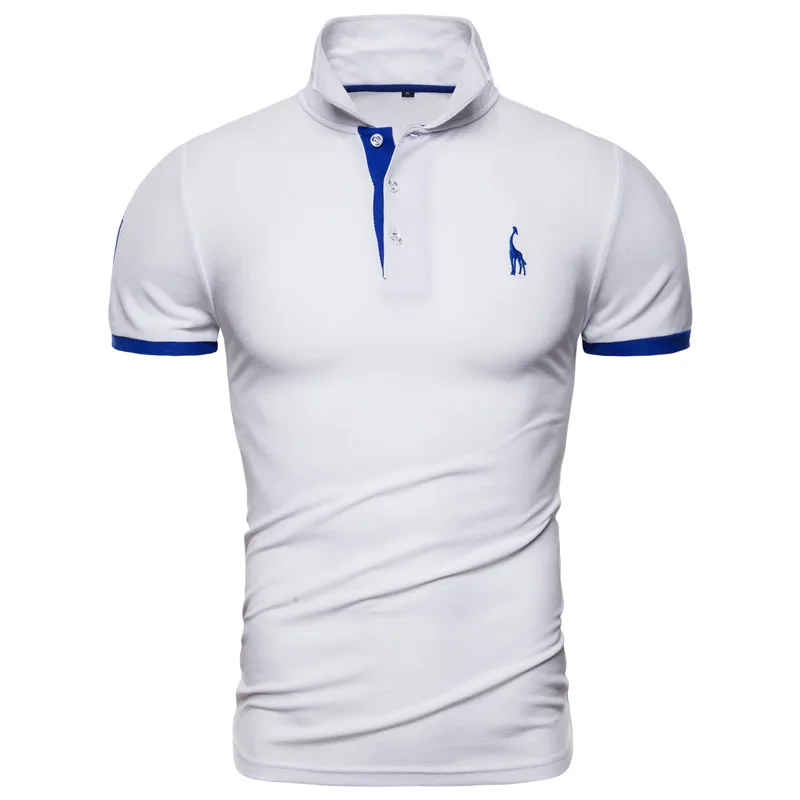 Мужская хлопковая рубашка-поло AIOPESON, повседневная Однотонная рубашка-поло с короткими рукавами и вышивкой жирафа, 13 цветов