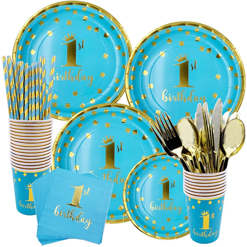 Liviorap 1st детские столовые приборы, одноразовые вечерние Посуда С Днем Рождения вечерние украшения Baby Shower поставки