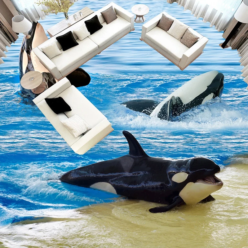Пользовательский 3D настил, Настенные обои, дельфин, океанские волны, унитаз, наклейка, водостойкая самоклеящаяся картина