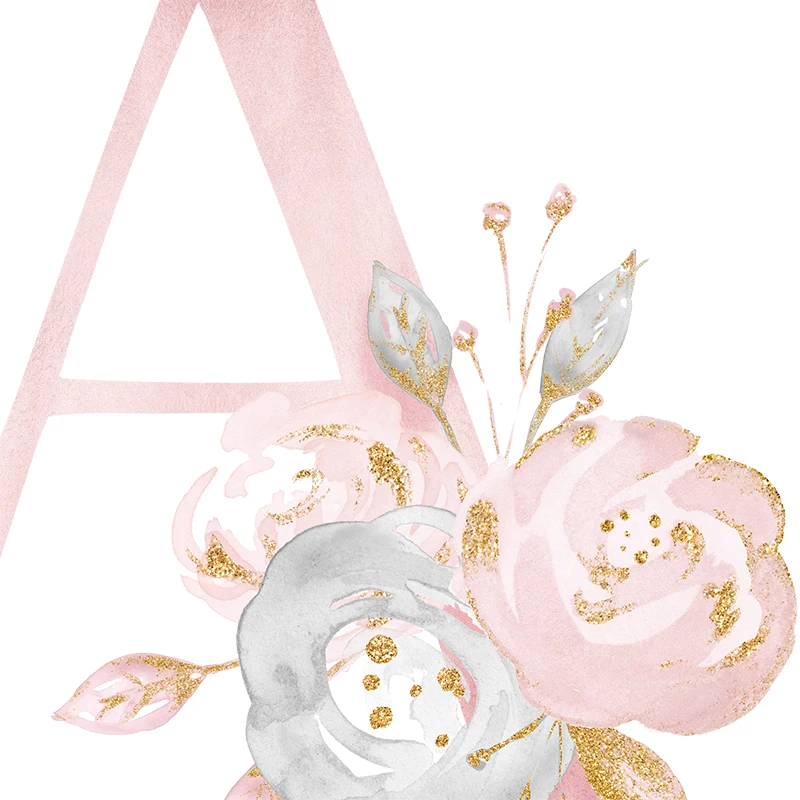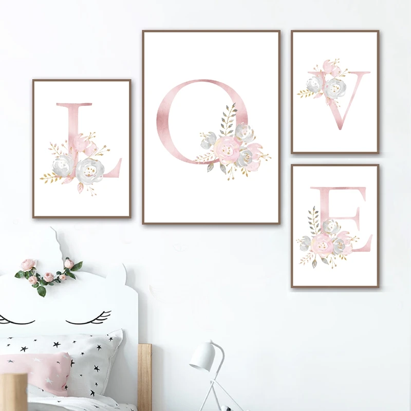 Цветочный пион, детская парусиновая печать, скандинавский плакат, монограмма, алфавит, название, холст, картина, принт для детской комнаты, для маленькой девочки, Настенный декор