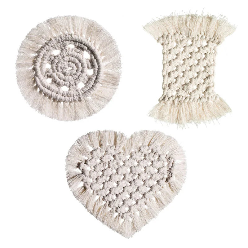 Коврики для чашек в скандинавском стиле, хлопковая веревка, макраме, бахрома, волна, сердце, круглая форма, подставки под горшки, коврики для домашнего рабочего стола, декоративные коврики в стиле бохо