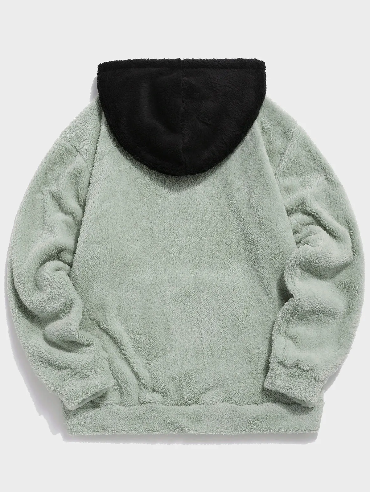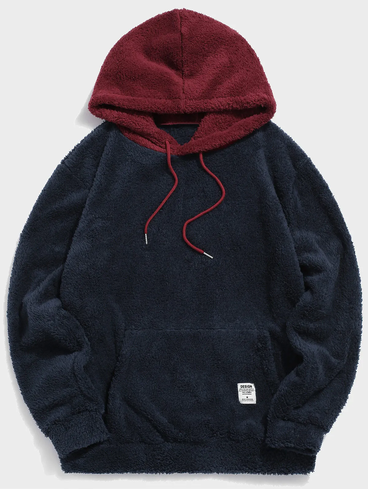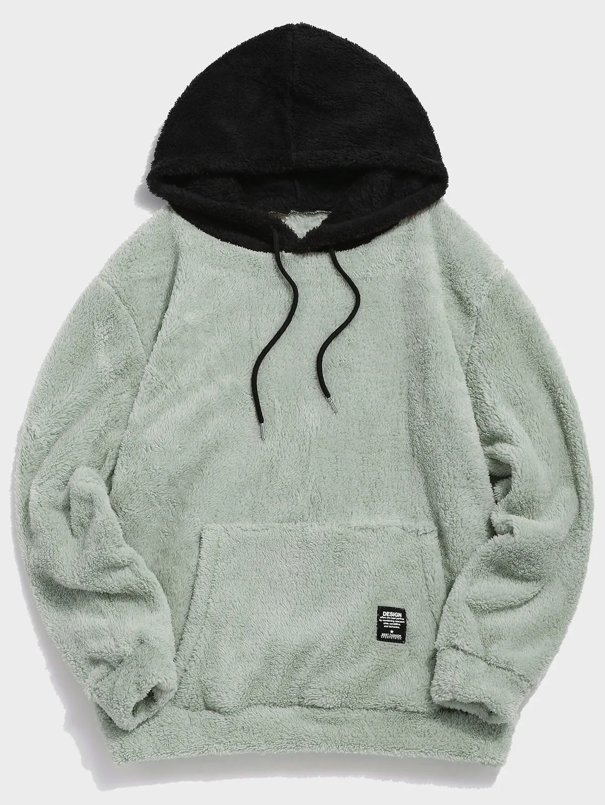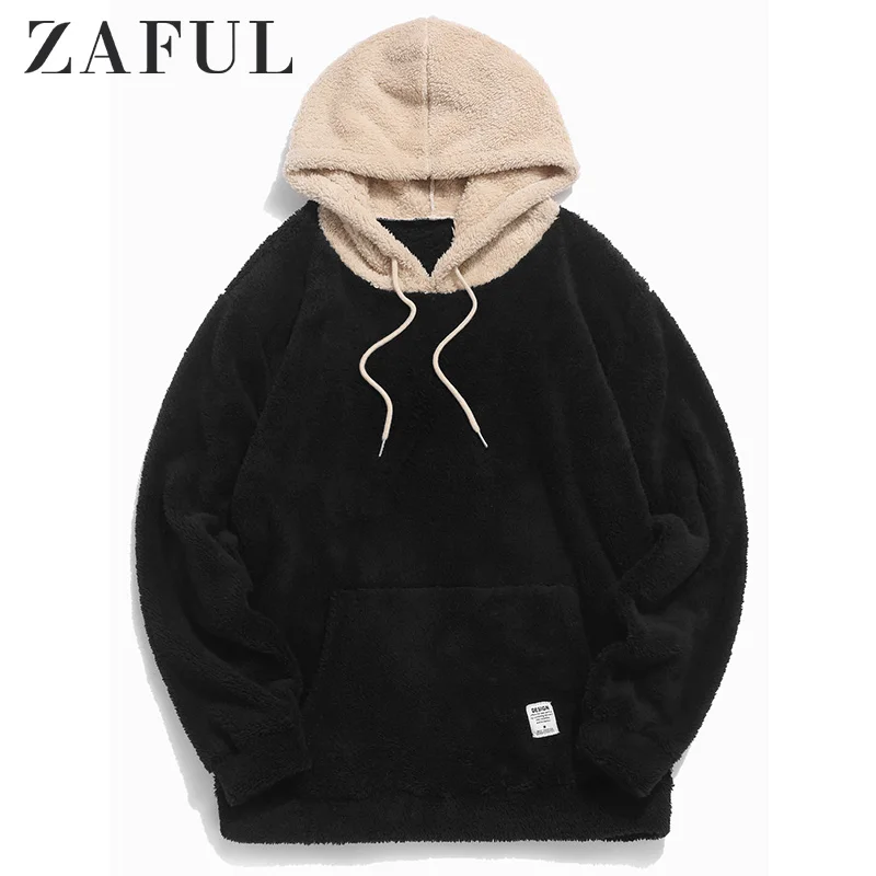 ZAFUL мужские толстовки с капюшоном с цветными блокировками, пушистые пуловеры, мужские толстовки с капюшоном на завязках, уличная одежда, однотонные топы на осень