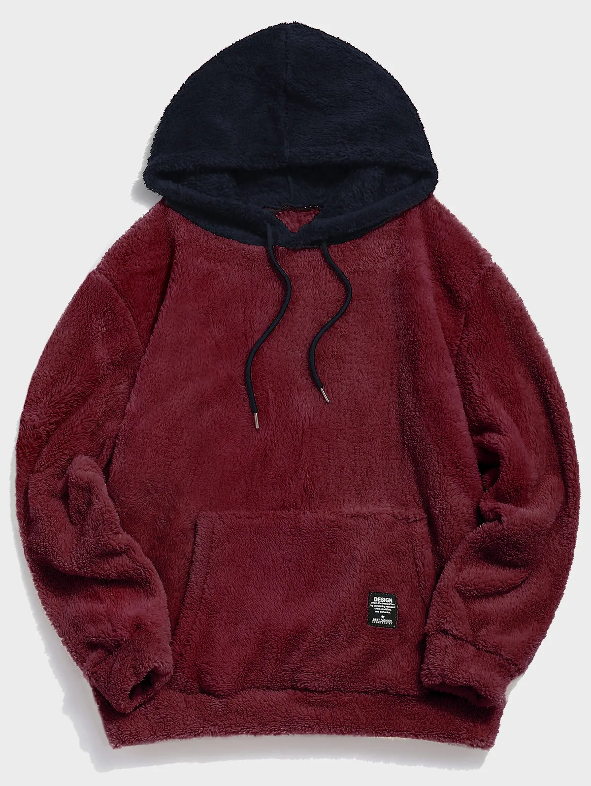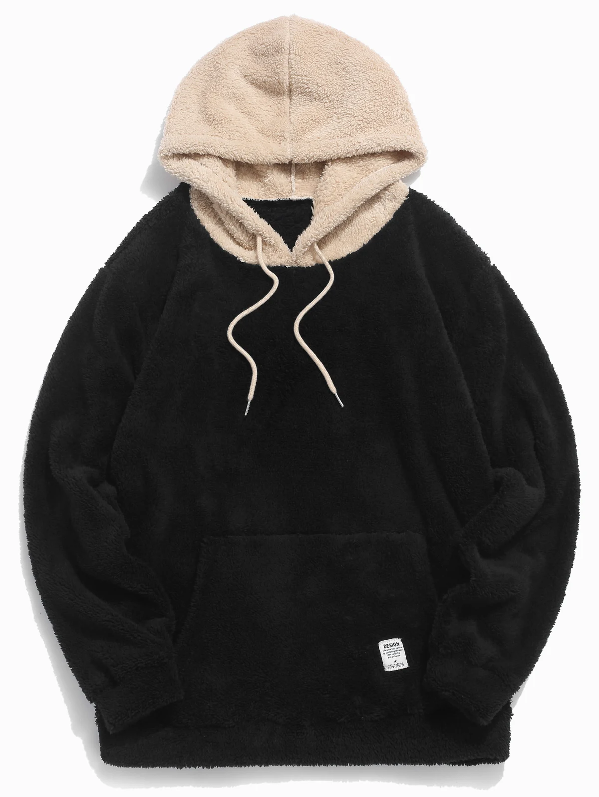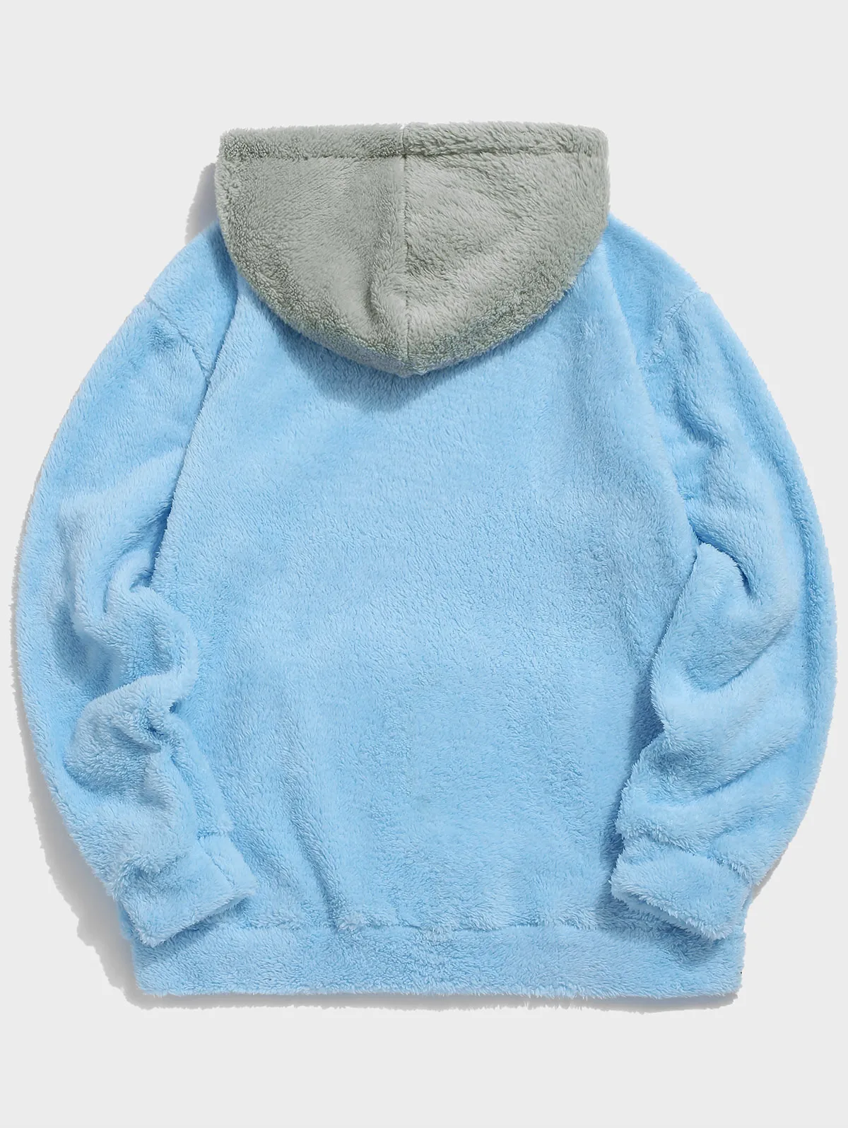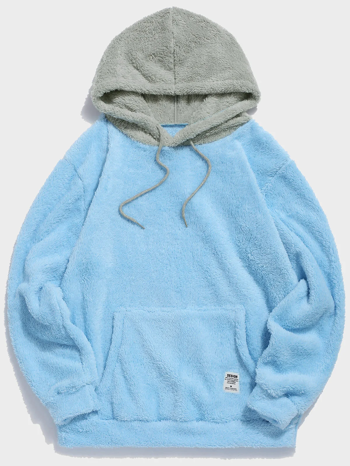 ZAFUL мужские толстовки с капюшоном с цветными блокировками, пушистые пуловеры, мужские толстовки с капюшоном на завязках, уличная одежда, однотонные топы на осень