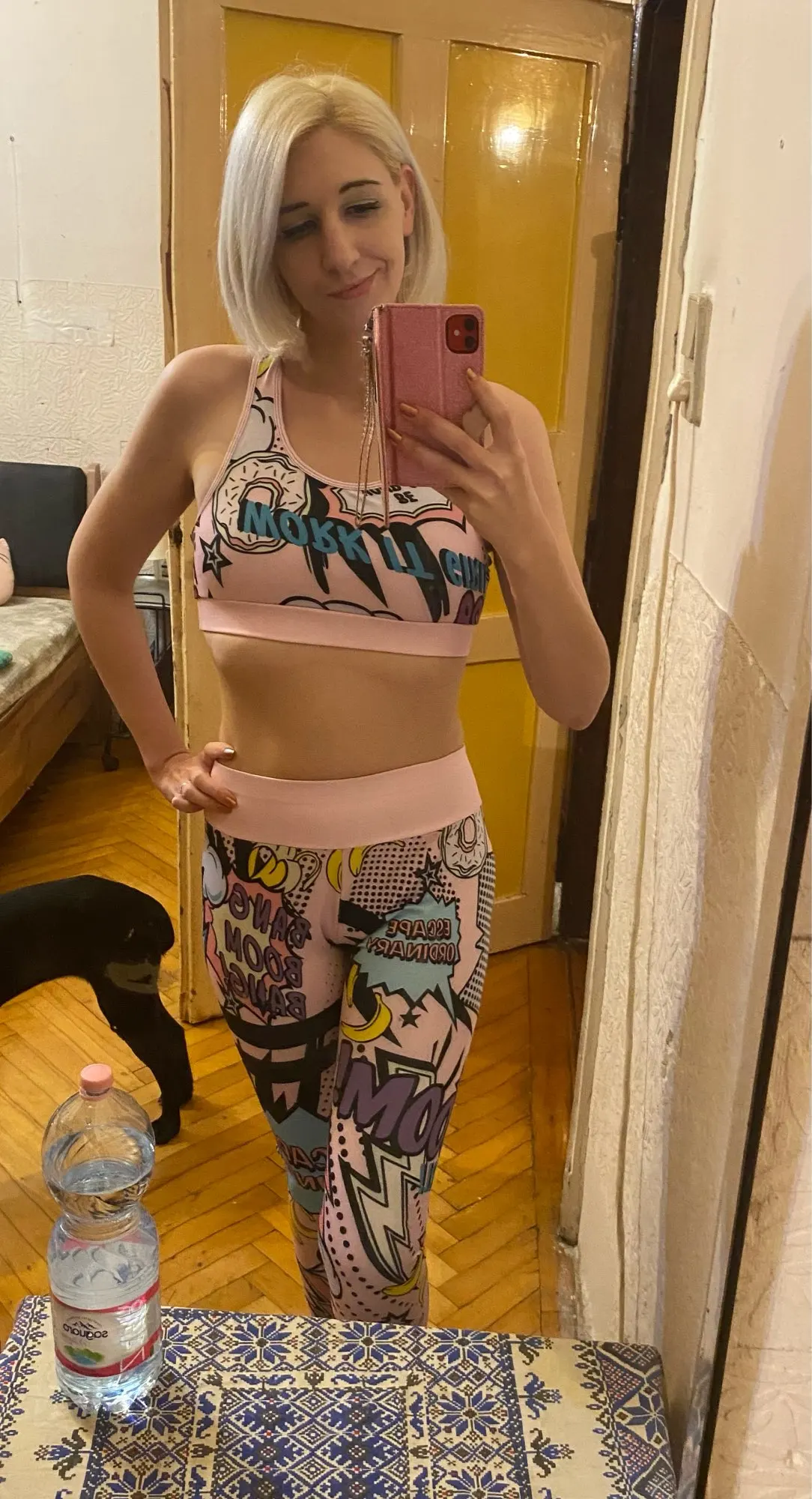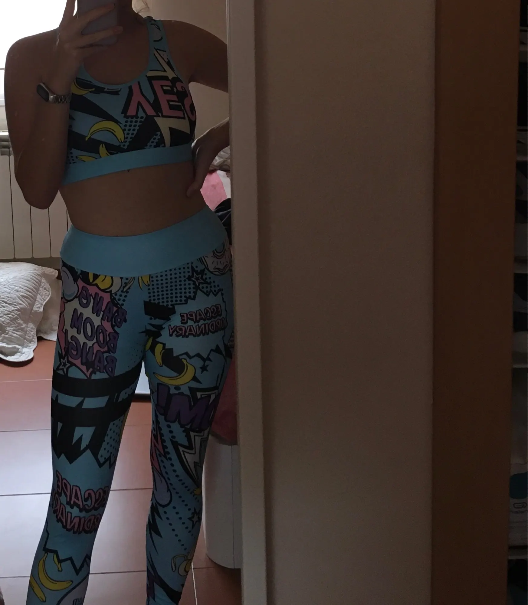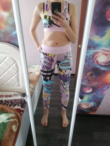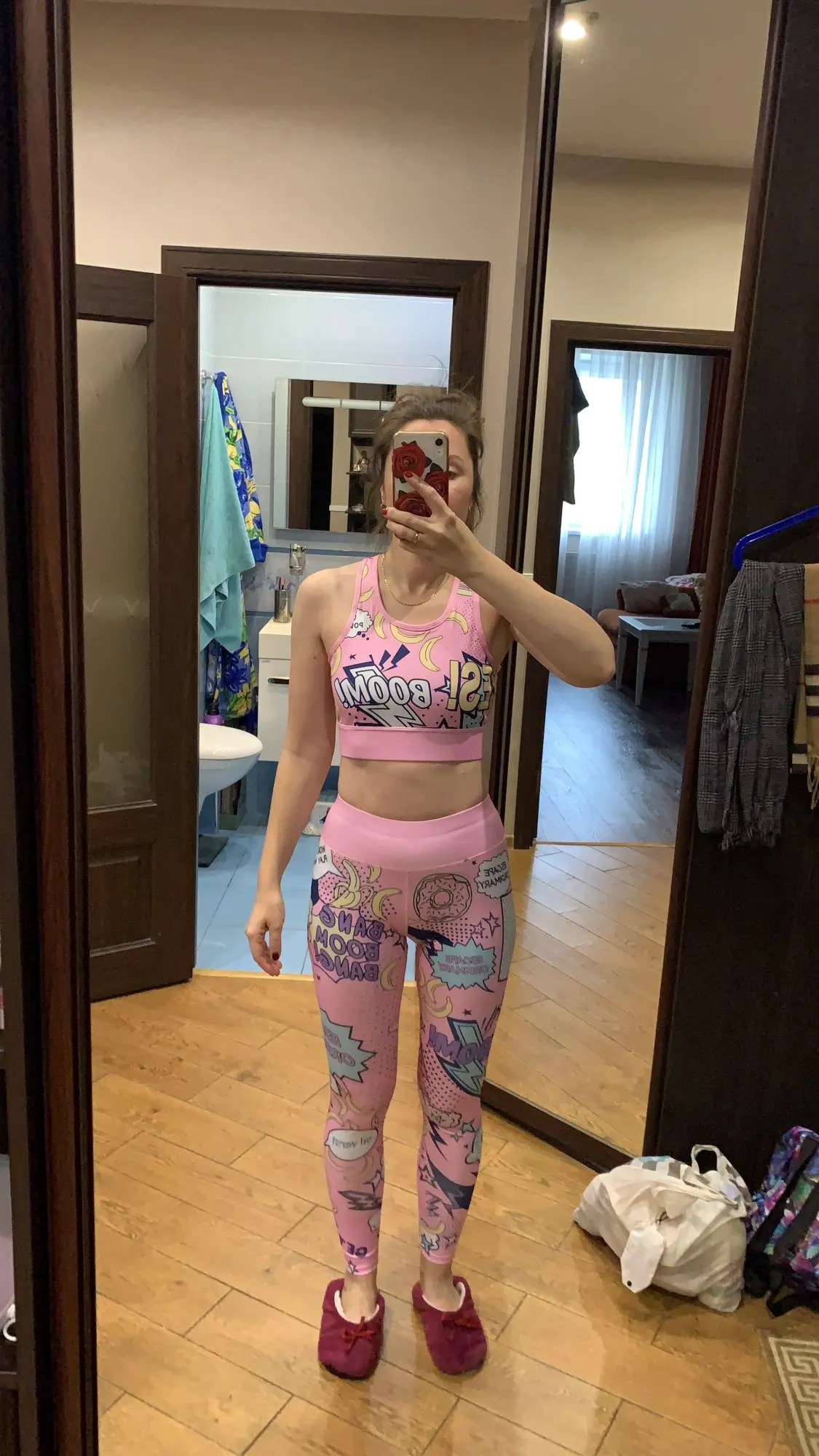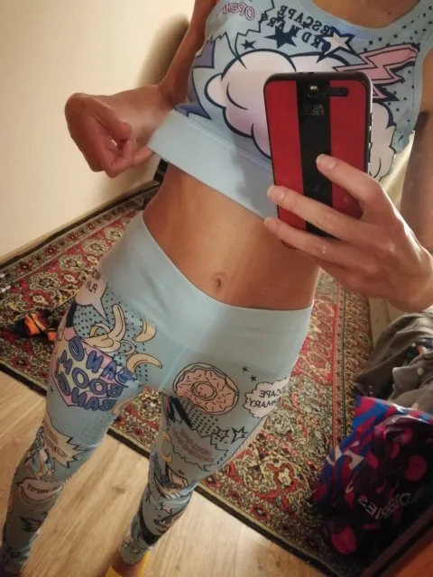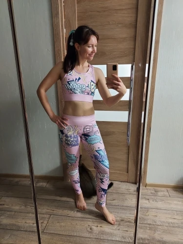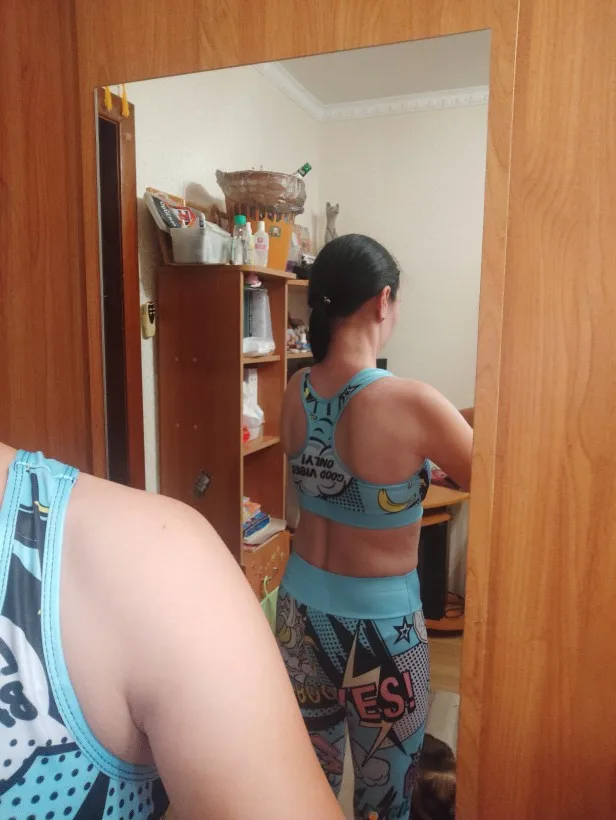 Костюм просто огонь! Ткань приятная, не просвечивает. Верх сел очень хорошо, будто на меня и шили, леггинсы немного большеваты и резинка сверху тонкая, поэтому сползают. Но если вшить резинку по всей ширине, думаю, будет ок
