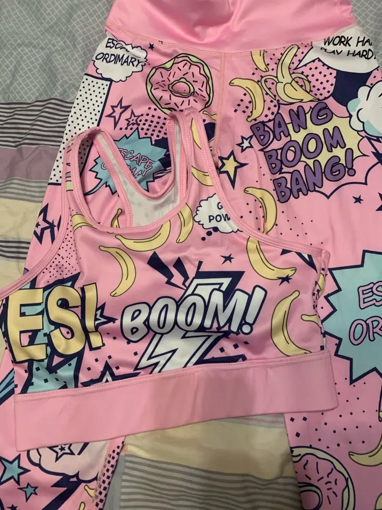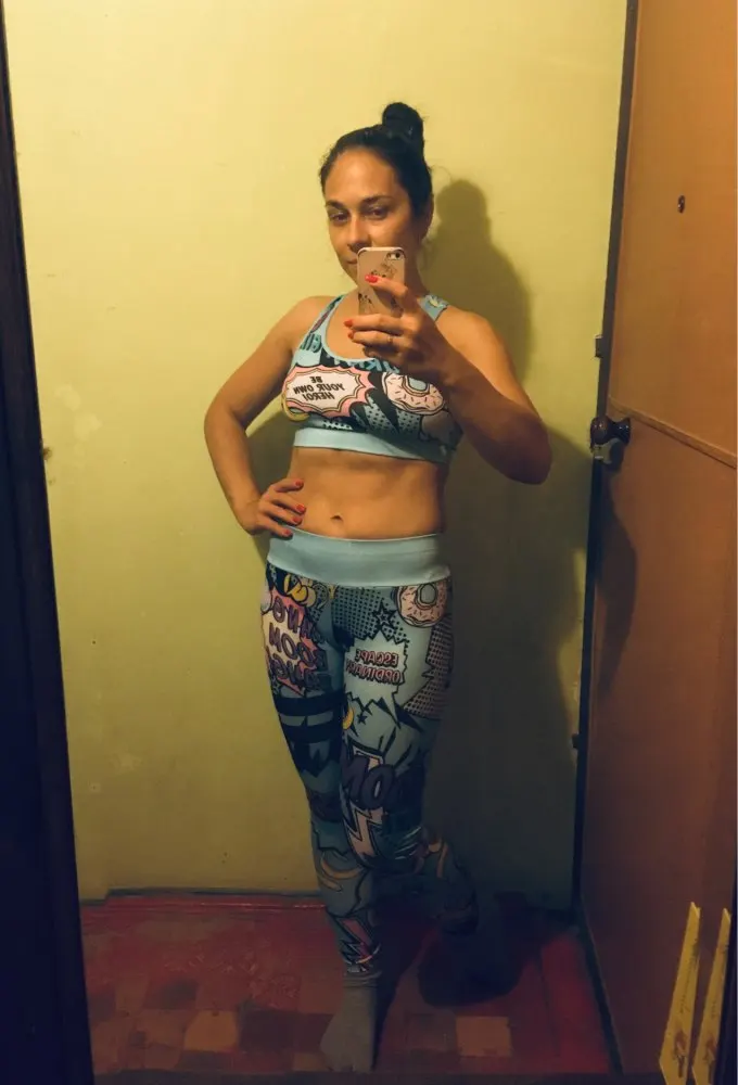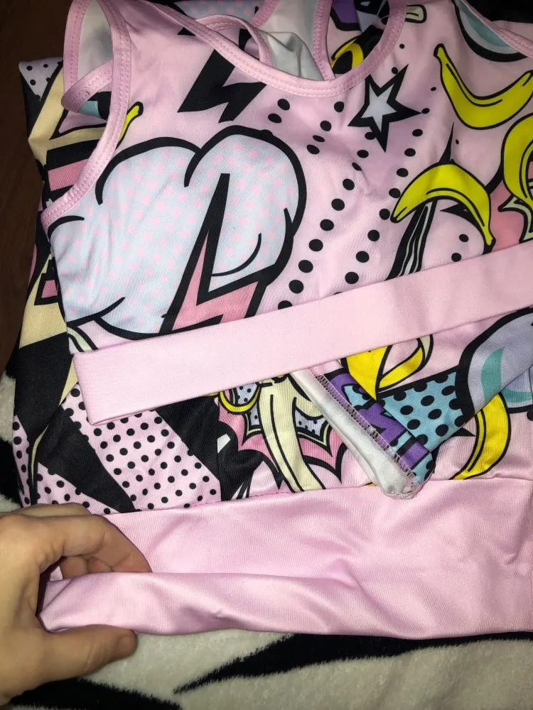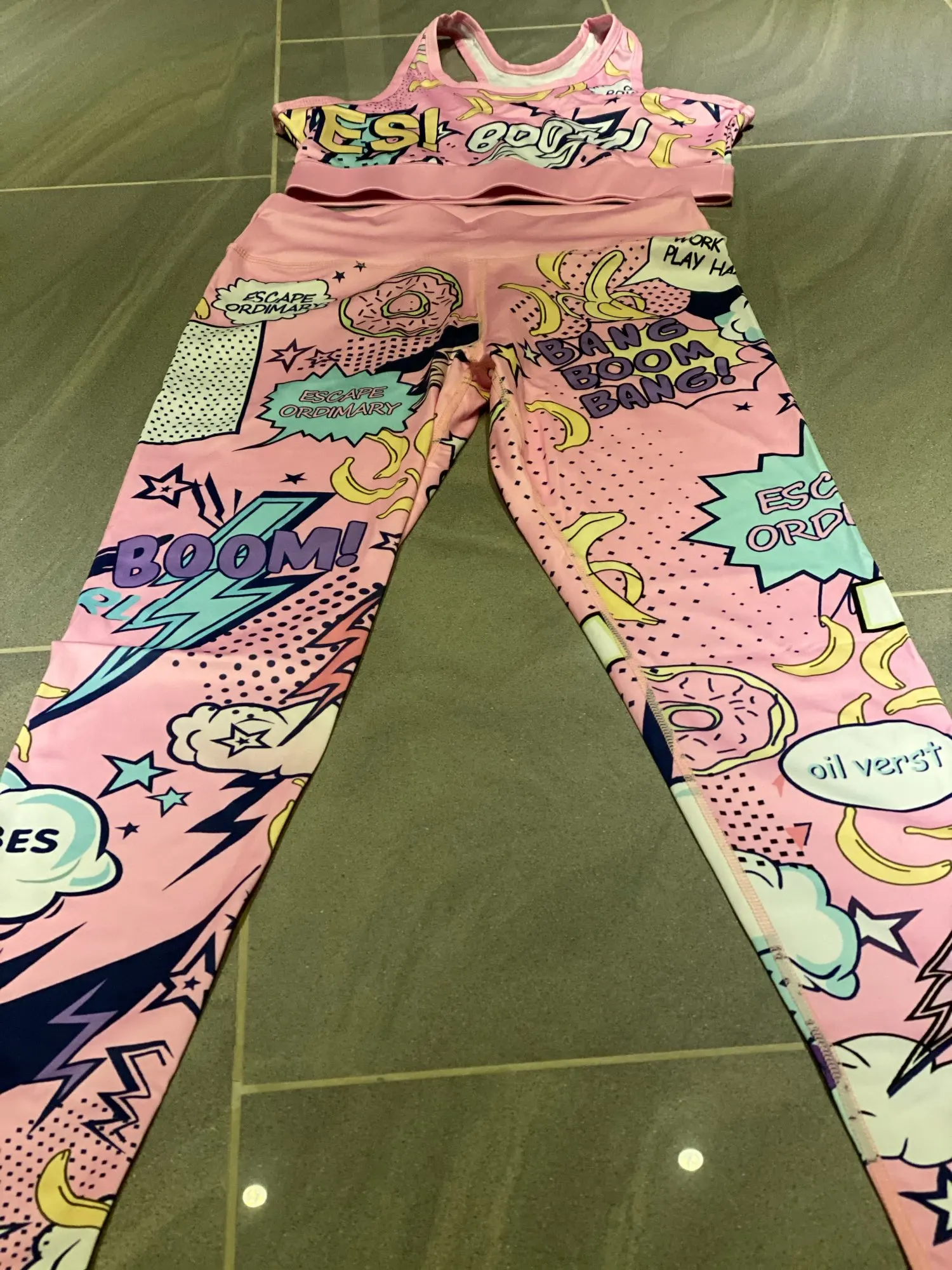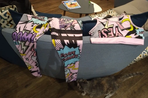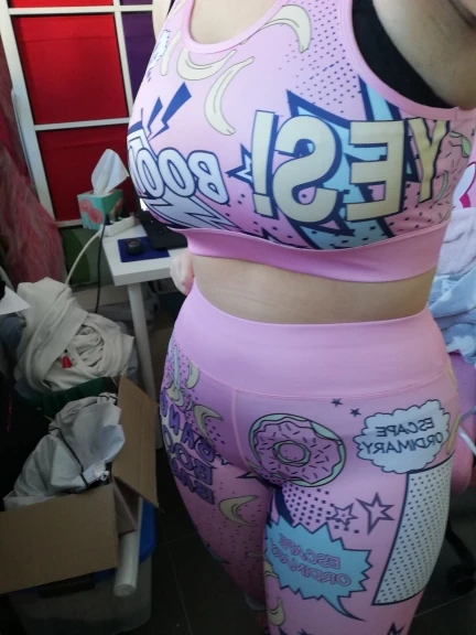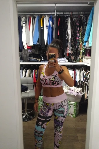 Костюм просто огонь! Ткань приятная, не просвечивает. Верх сел очень хорошо, будто на меня и шили, леггинсы немного большеваты и резинка сверху тонкая, поэтому сползают. Но если вшить резинку по всей ширине, думаю, будет ок