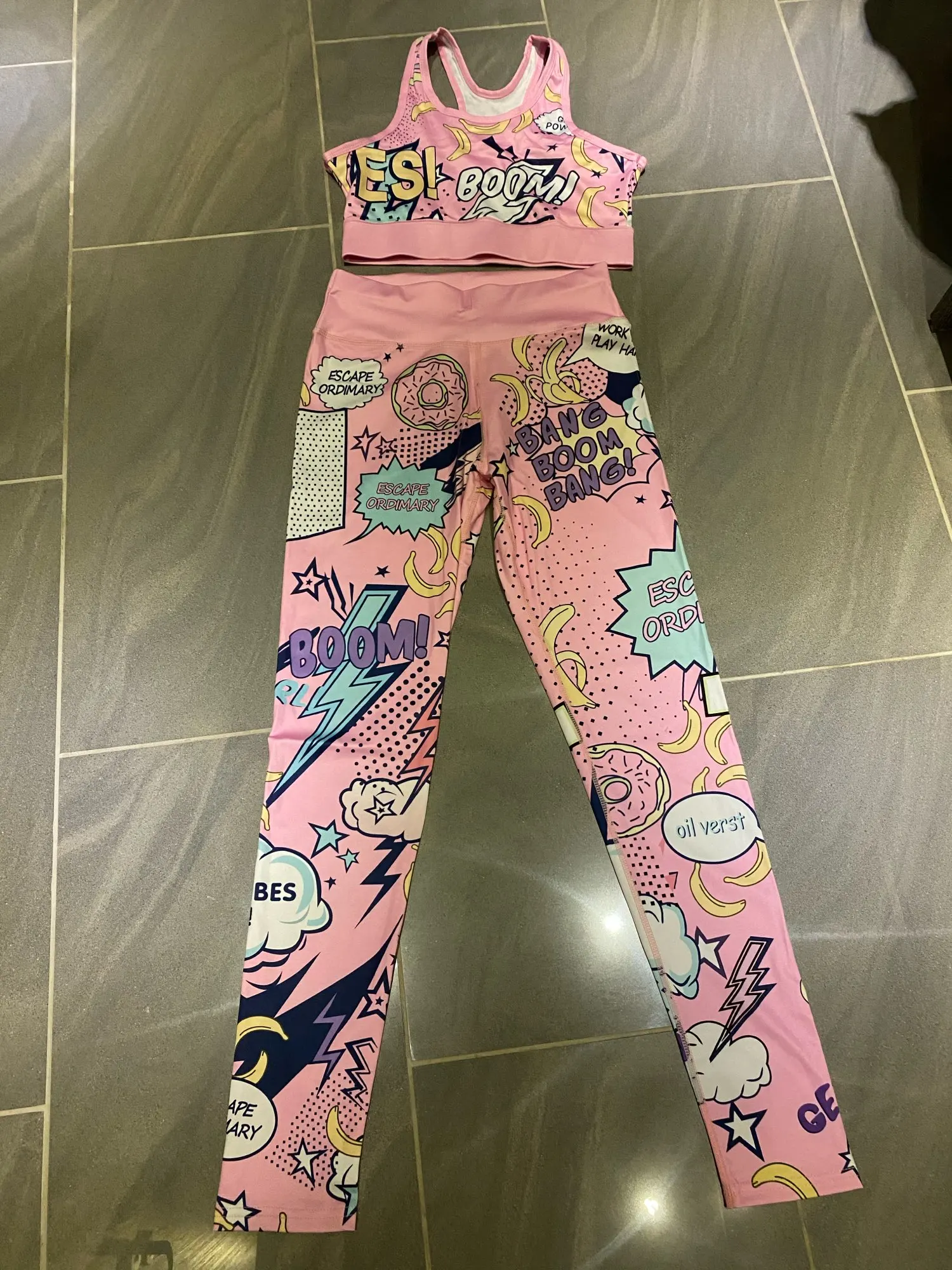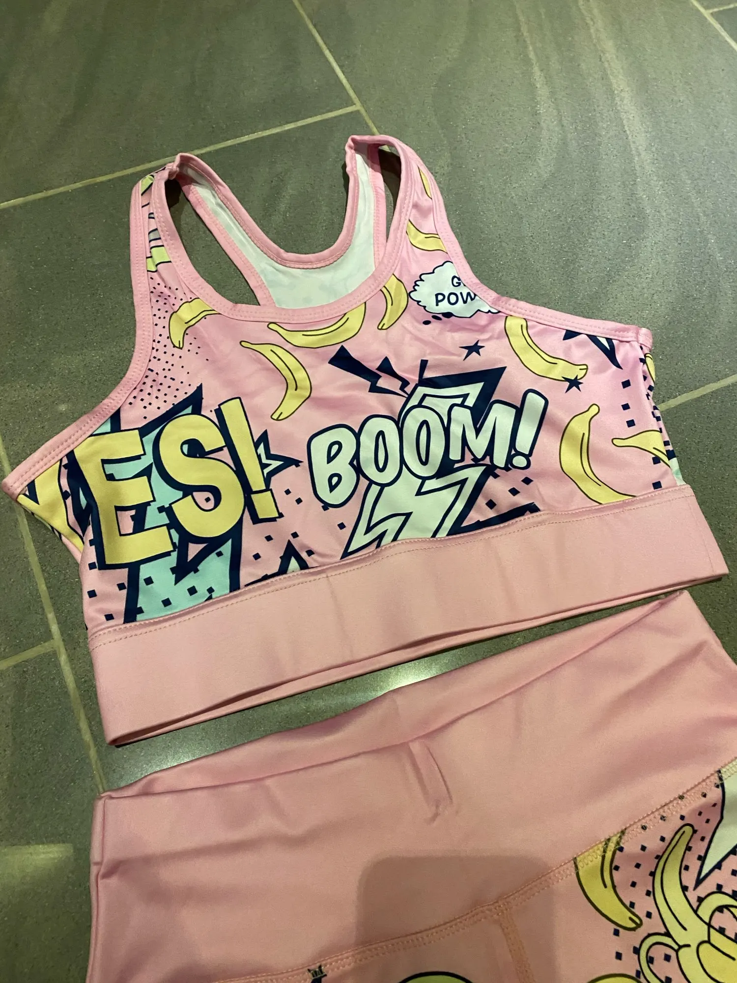 Женский спортивный костюм для бега и йоги, с принтом банана, штаны с высокой талией, в стиле Харадзюку