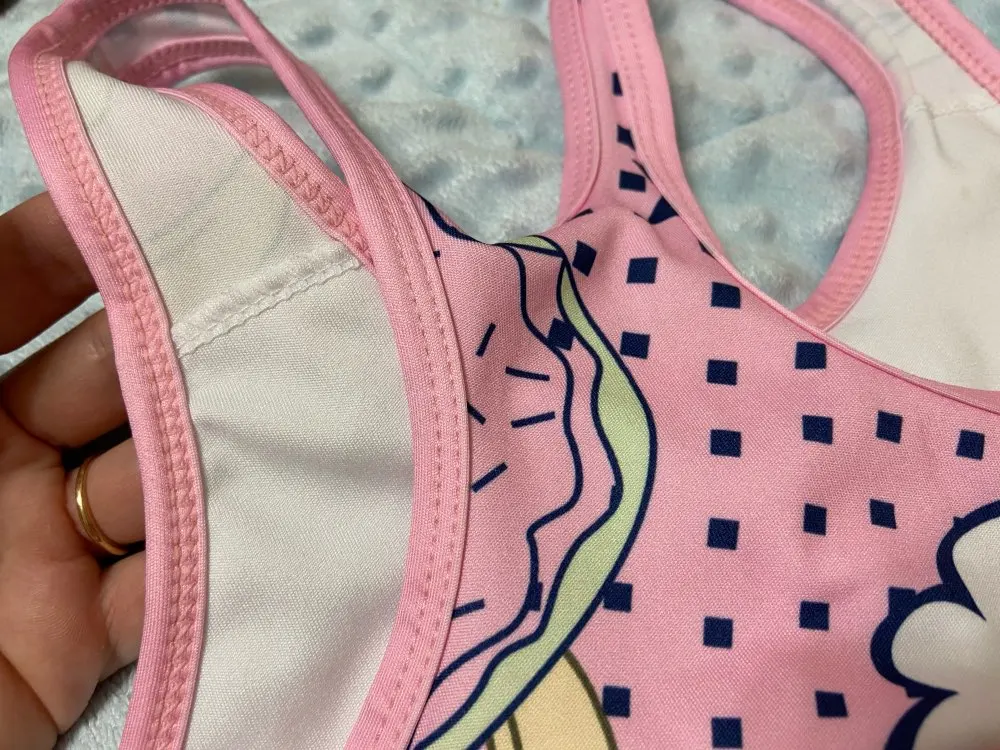 Костюм супер, берите не пожалеете. Все швы ровные, качественные, ткань эластичная, яркая, не просвечивает. Единственный минус нет подкладок в груди, но есть отверстия под них. На параметры 88-65-90 и рост 160- a само то сел, но как и писали топ в груди не много топорщится.