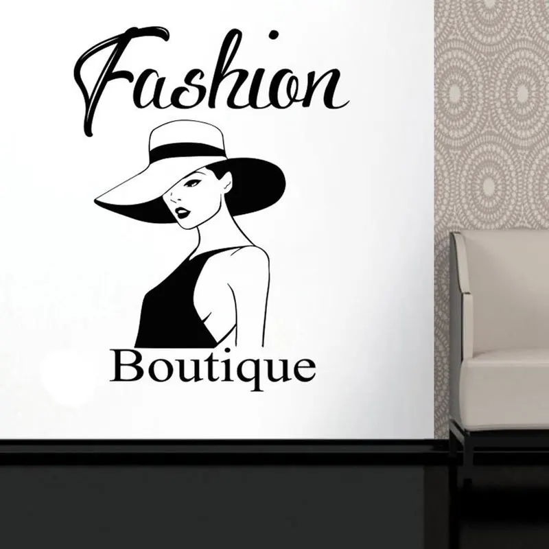 Модная женская с шляпкой стильная одежда Бутик платье Настенная Наклейка виниловая домашний декор интерьер оконные наклейки Съемная роспись A550