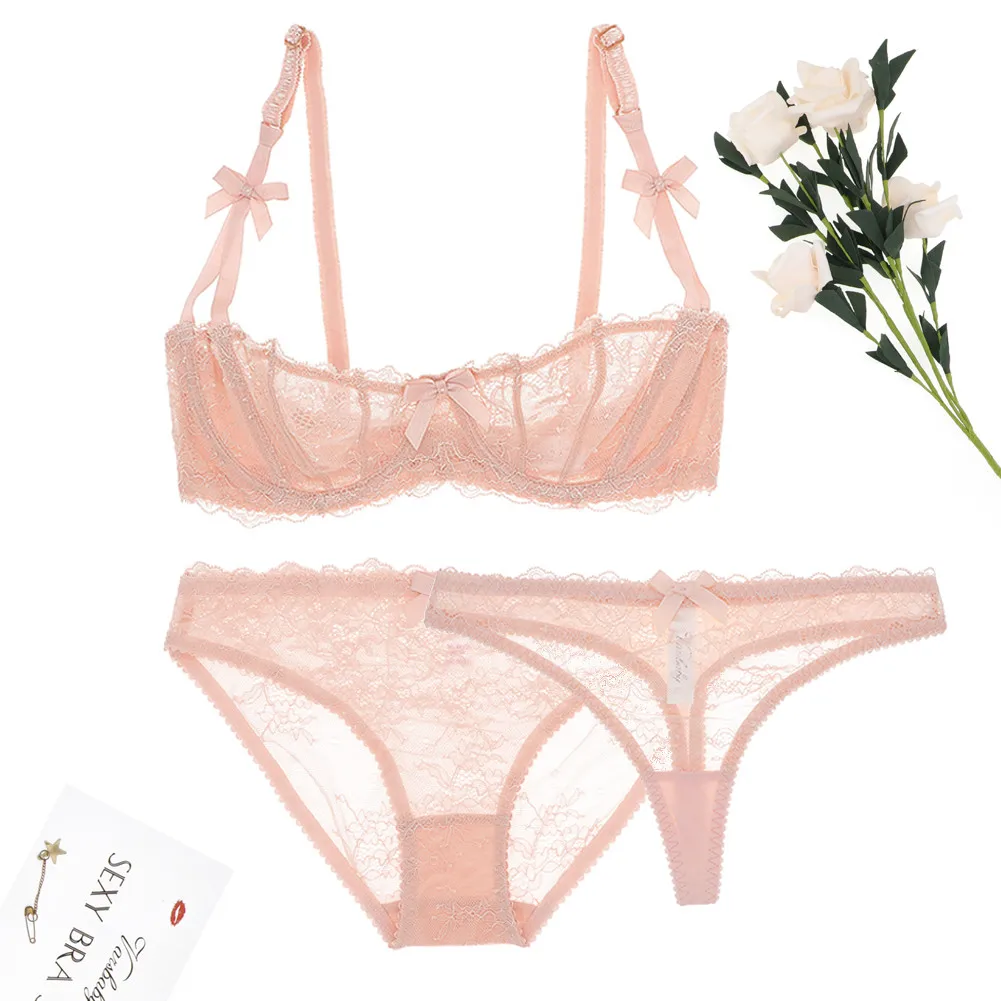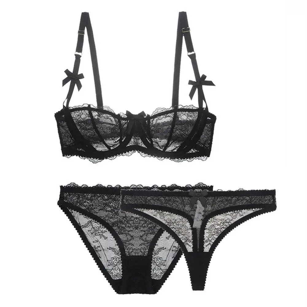 Женское сексуальное нижнее белье, прозрачное, на косточках, кружевное, ультратонкое, большого размера, удобное нижнее белье, комплект с бюстгальтером