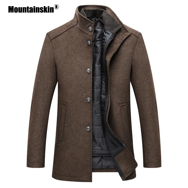 Мужское шерстяное пальто Mountainskin, приталенное плотное пальто с регулируемым размером, зима мужская куртка из шерсти