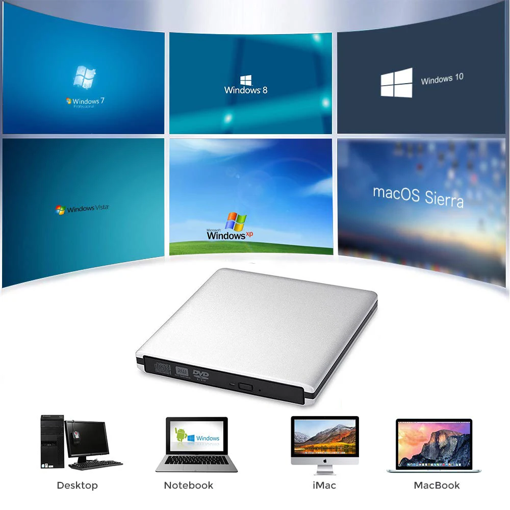 Внешний DVD-привод USB 3,0, RW, записывающее устройство, CD-ROM проигрыватель для Apple Macbook, iMAC, ноутбуков, ПК, Windows 1087