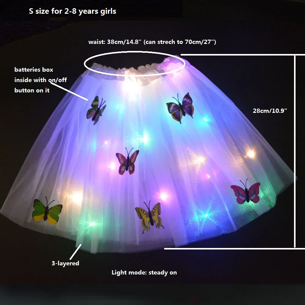 1: резинка на талии эластичная, легко надевается и снимается, и может соответствовать различным формам и размерам. Атласный пояс для дополнительного комфорта.2: многослойная балетная пачка со светодиодной подсветкой, изготовленная из высококачественных материалов, ярких цветов, мягкая и удобная в носке.3: свет выглядит ярко и потрясающе ночью, и дает большое освещение неоновых юбок.4: две кнопки в комплекте. Аккумулятор с переключателем вкл/выкл в маленькой пластиковой коробке на поясе. Светодиодные лампы длятся долго.5: Привлекательная юбка-пачка с бабочками, которая не упадет, отлично подходит для костюмированных вечеринок, праздничных мероприятий, марафонских пробежек и многого другого. 6: юбка состоит из трехслойной сетки, которая немного прозрачна, и вы должны носить леггинсы внутри