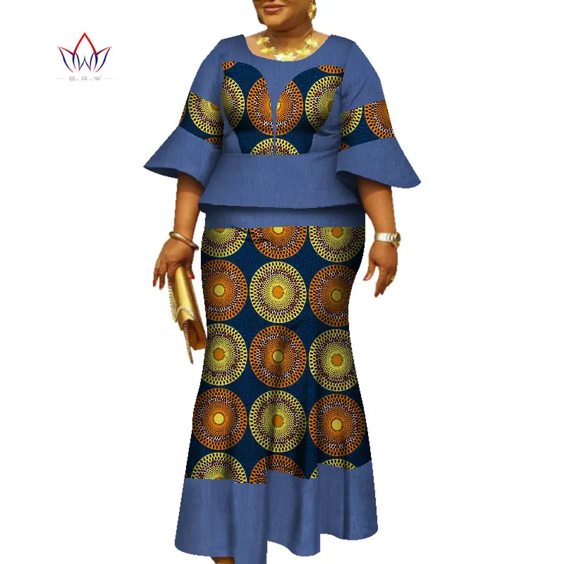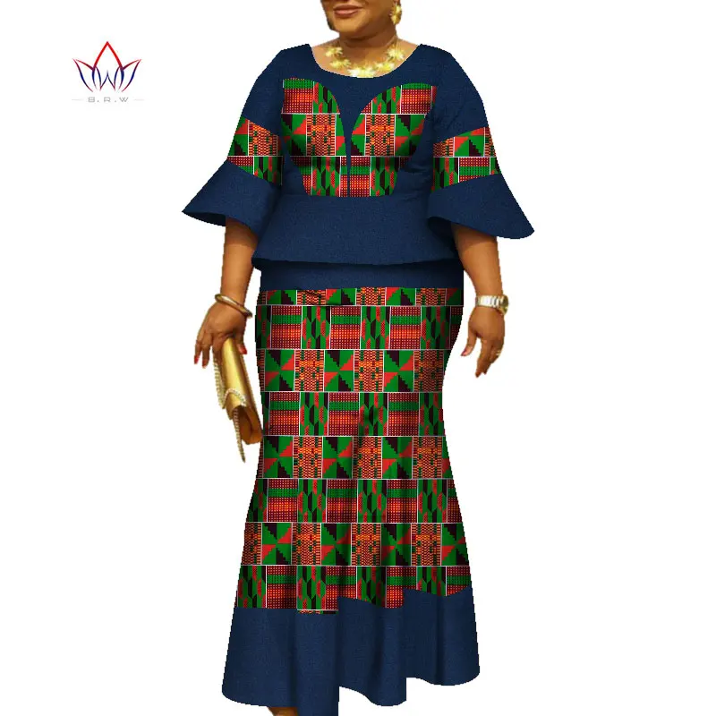 Женский комплект из топа и юбки, с принтом и оборками на рукавах, с юбкой, в африканском стиле, WY5712