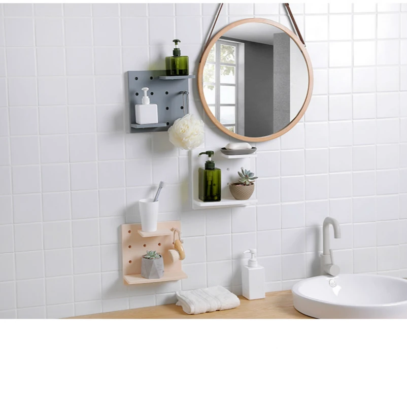 Отверстие ПЛАСТИНА настенный стеллаж для хранения пластмассовый отверстие доска полка для хранения с наклейкой подвесные крючки Домашний Органайзер для кухни ванной комнаты