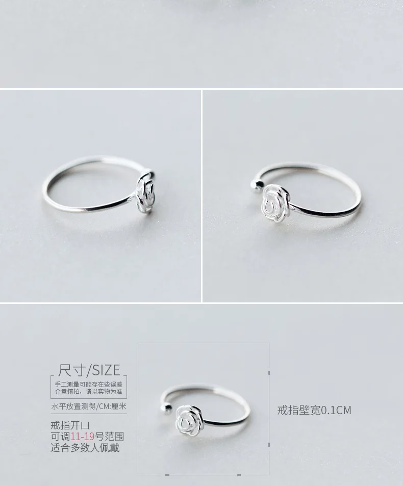 Женское Открытое кольцо с цветком, из серебра 925 пробы