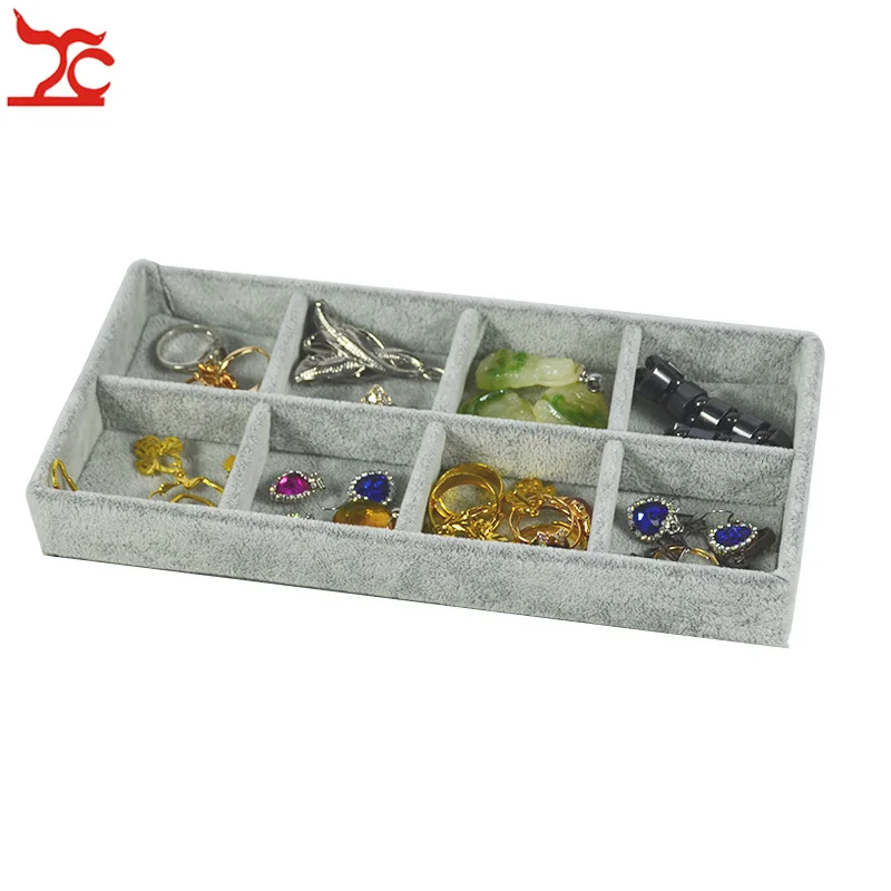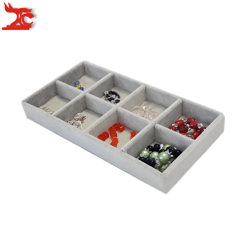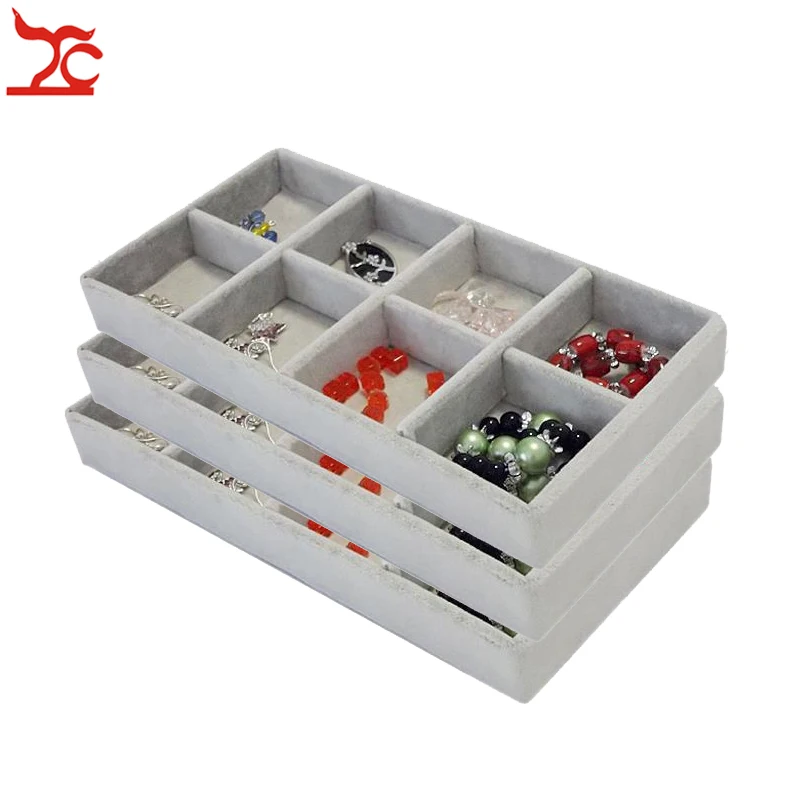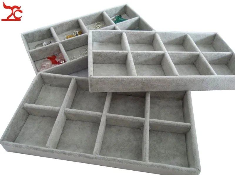 Оптовая продажа 3 шт./лот серый бархатный ящик для хранения ювелирных изделий Портативный 8 сеток браслет из бисера Кольцо Кулон Ювелирные изделия Органайзер контейнер лоток