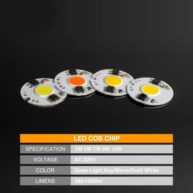 Светодиодный светильник для выращивания, COB Chip Full Spectrum 3 Вт 5 Вт 7 Вт 9 Вт 12 Вт 20 Вт 30 Вт 50 Вт 220 В, светодиодный светильник для растений