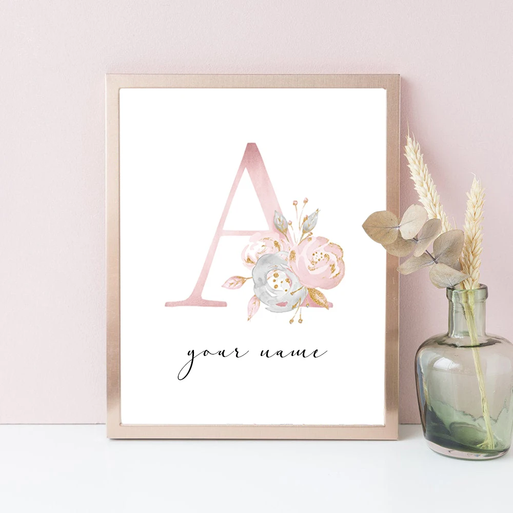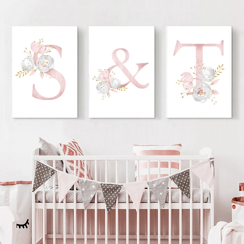 Детские парусиновые постеры, Детская Живопись акварелью, розовые цветы, настенные художественные картины с принтом для девочек, украшение комнаты