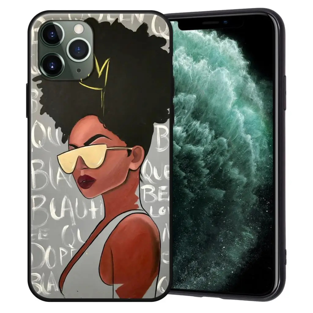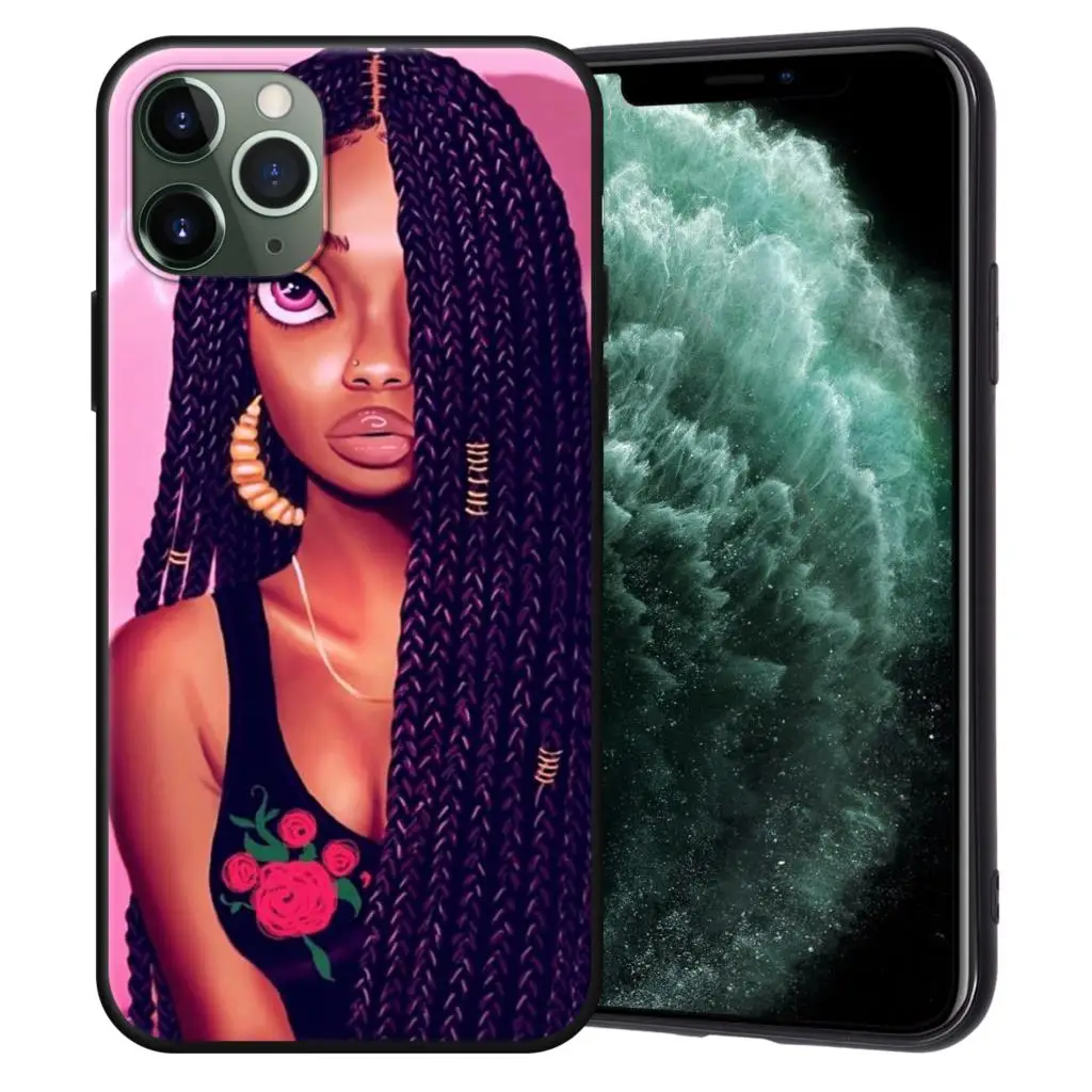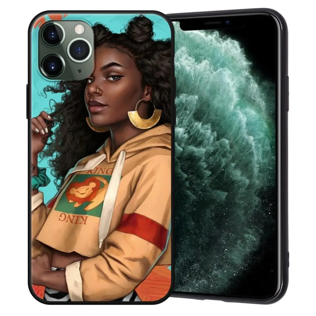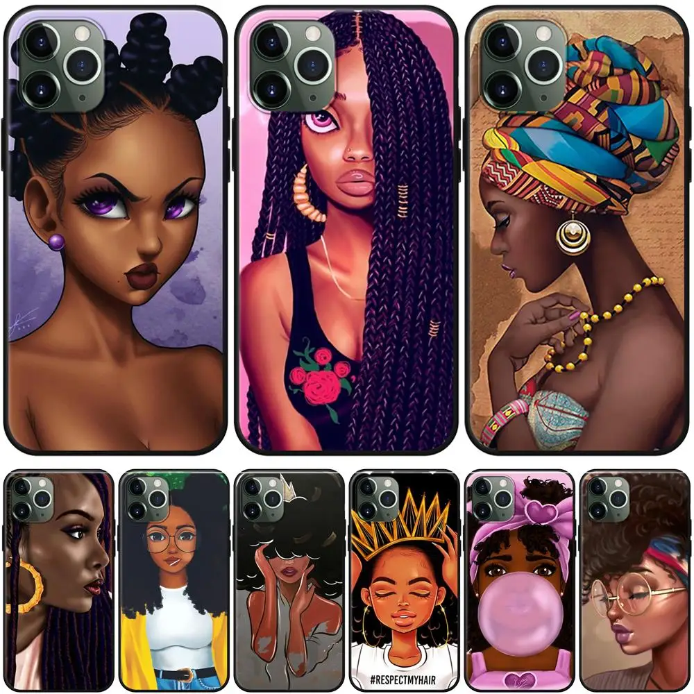 Чехол-накладка для iPhone 11 Pro Max, 7, 8, 6, 6S Plus, 5, 5S, SE, с изображением афро девушек, черного цвета