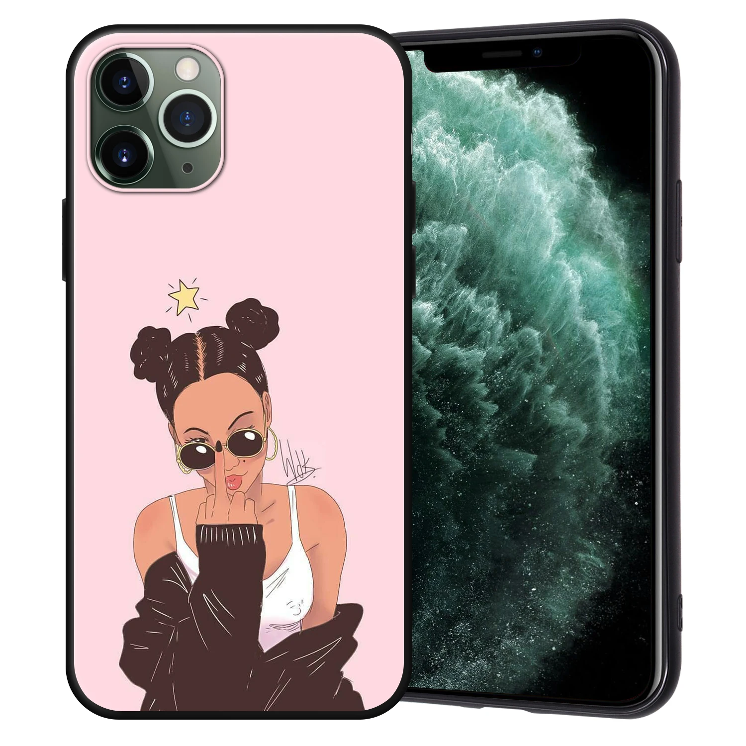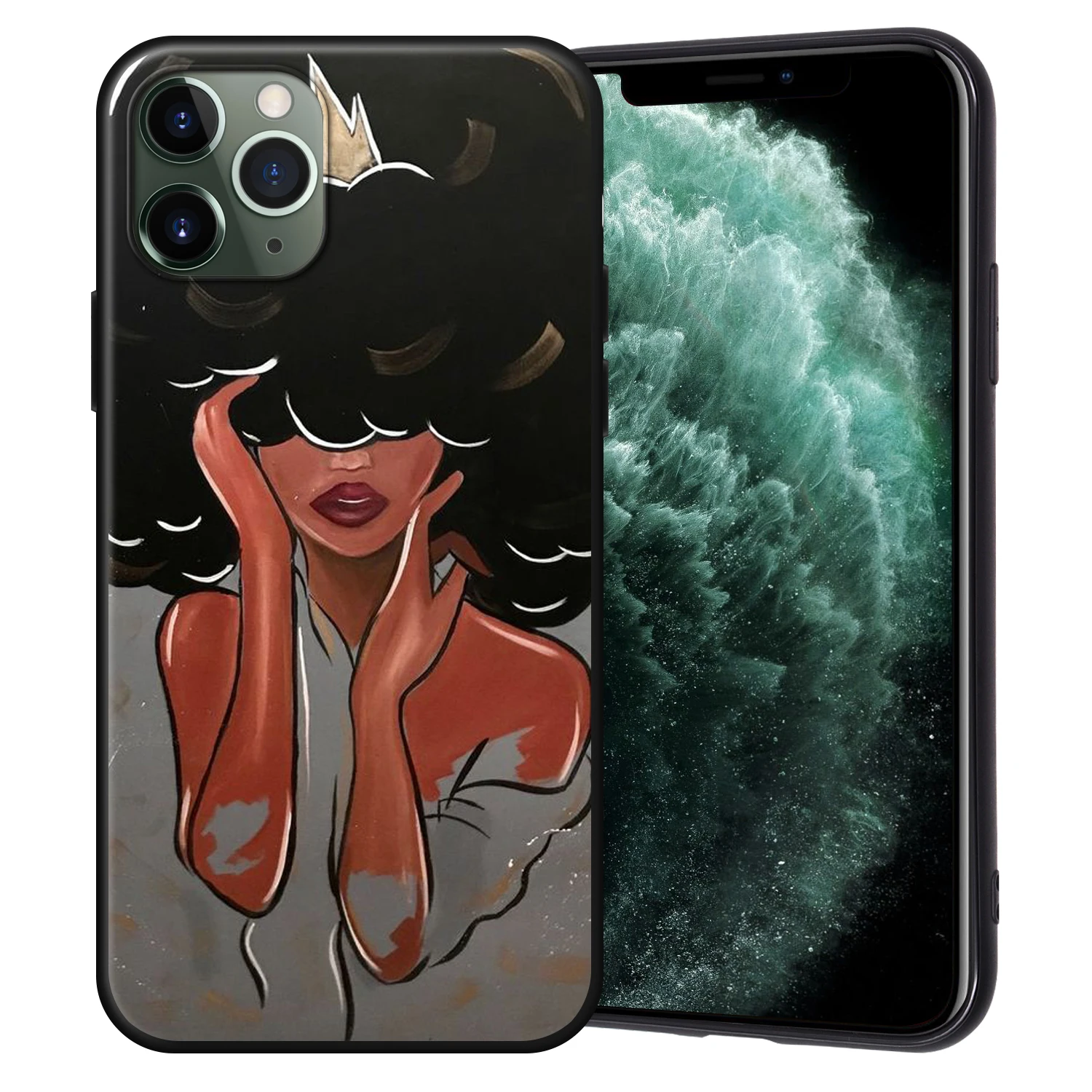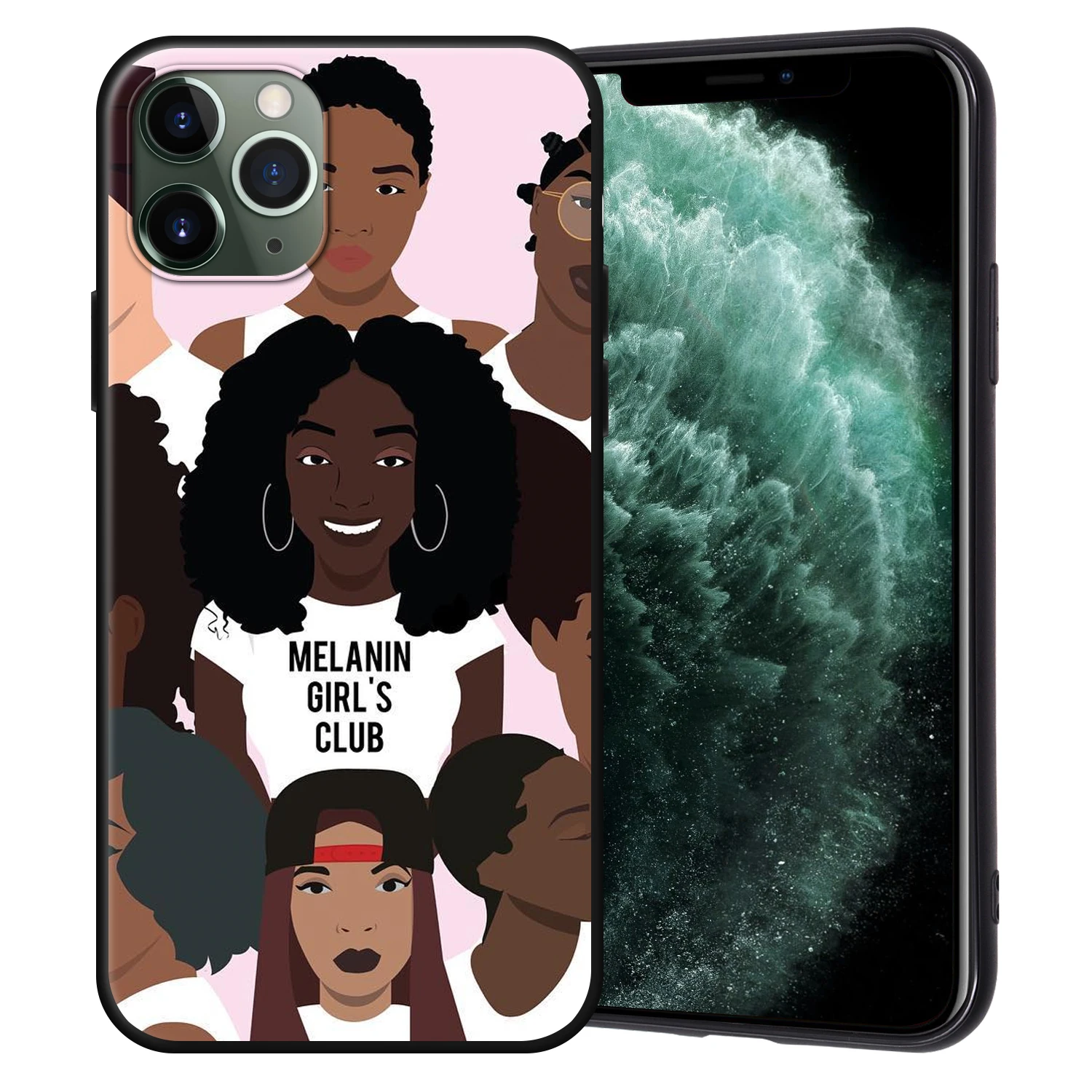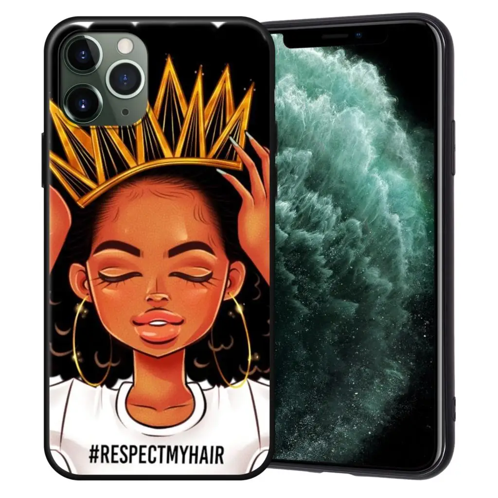 Чехол-накладка для iPhone 11 Pro Max, 7, 8, 6, 6S Plus, 5, 5S, SE, с изображением афро девушек, черного цвета