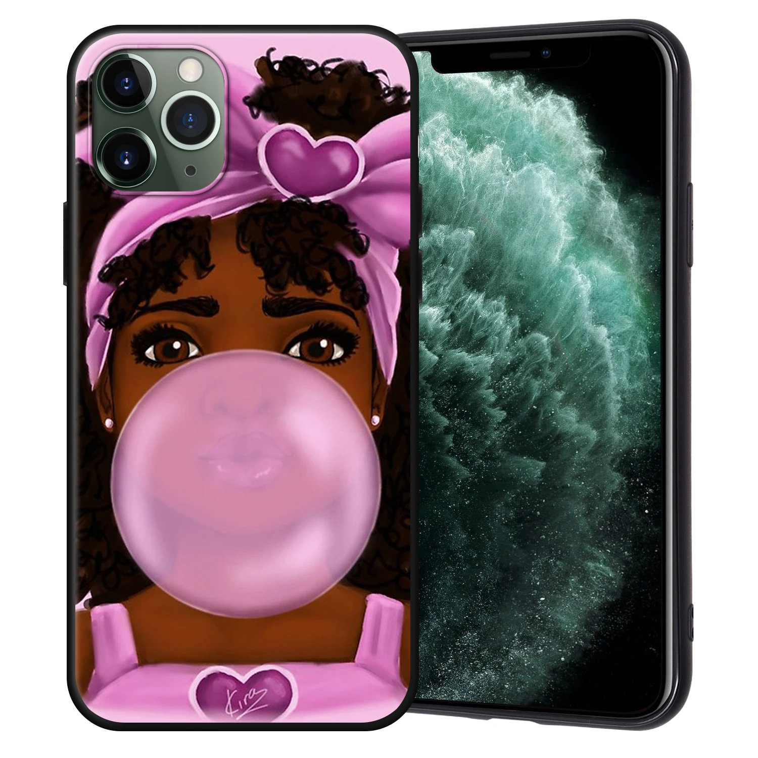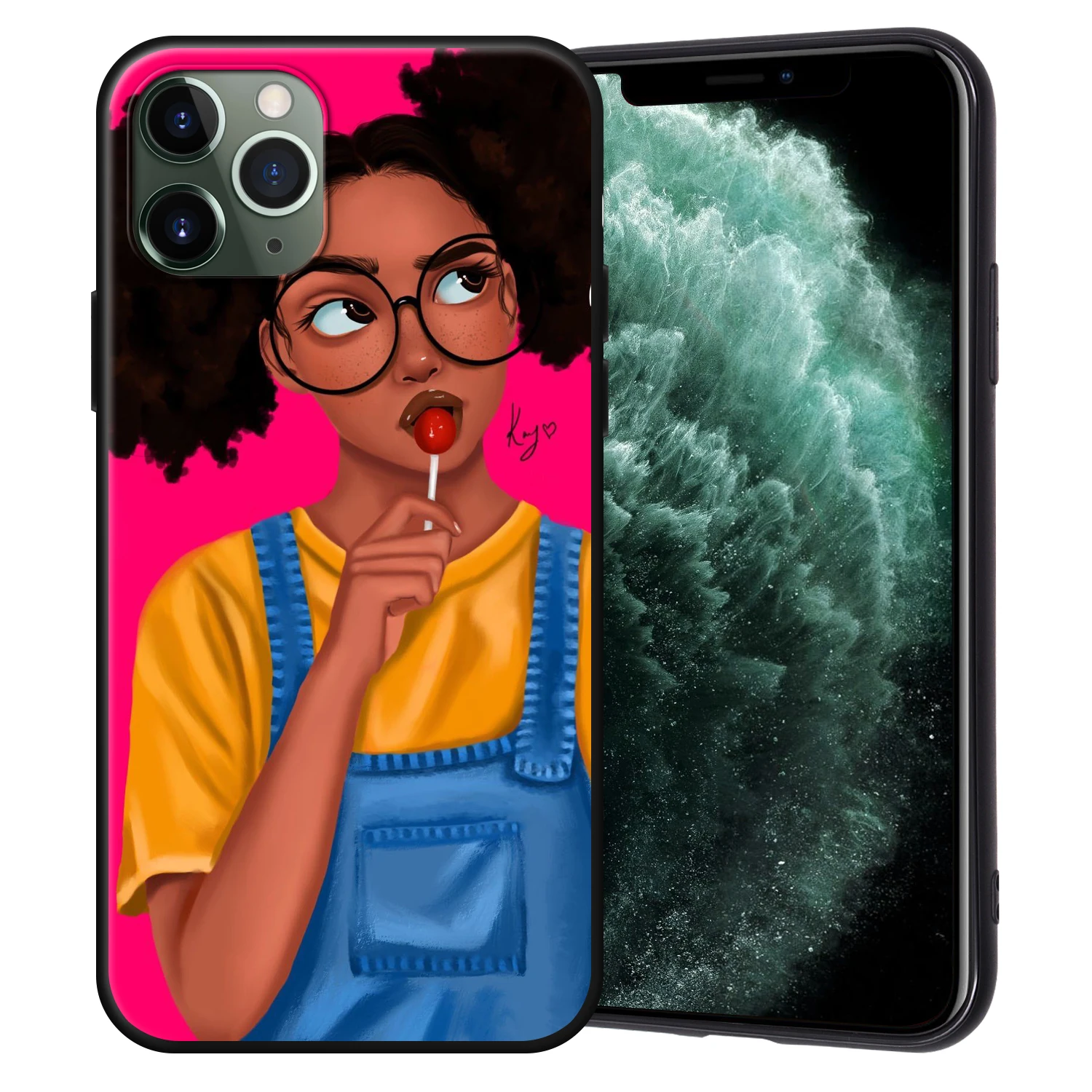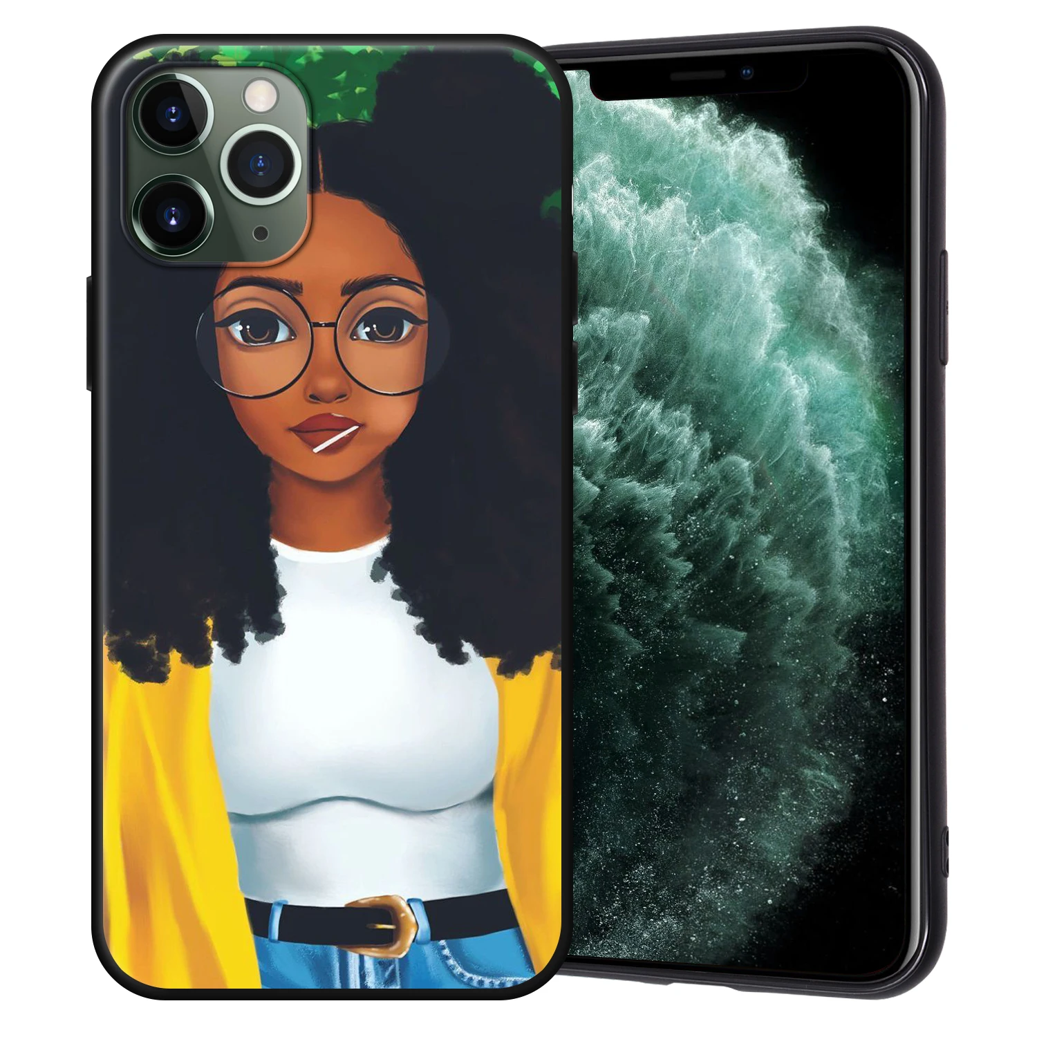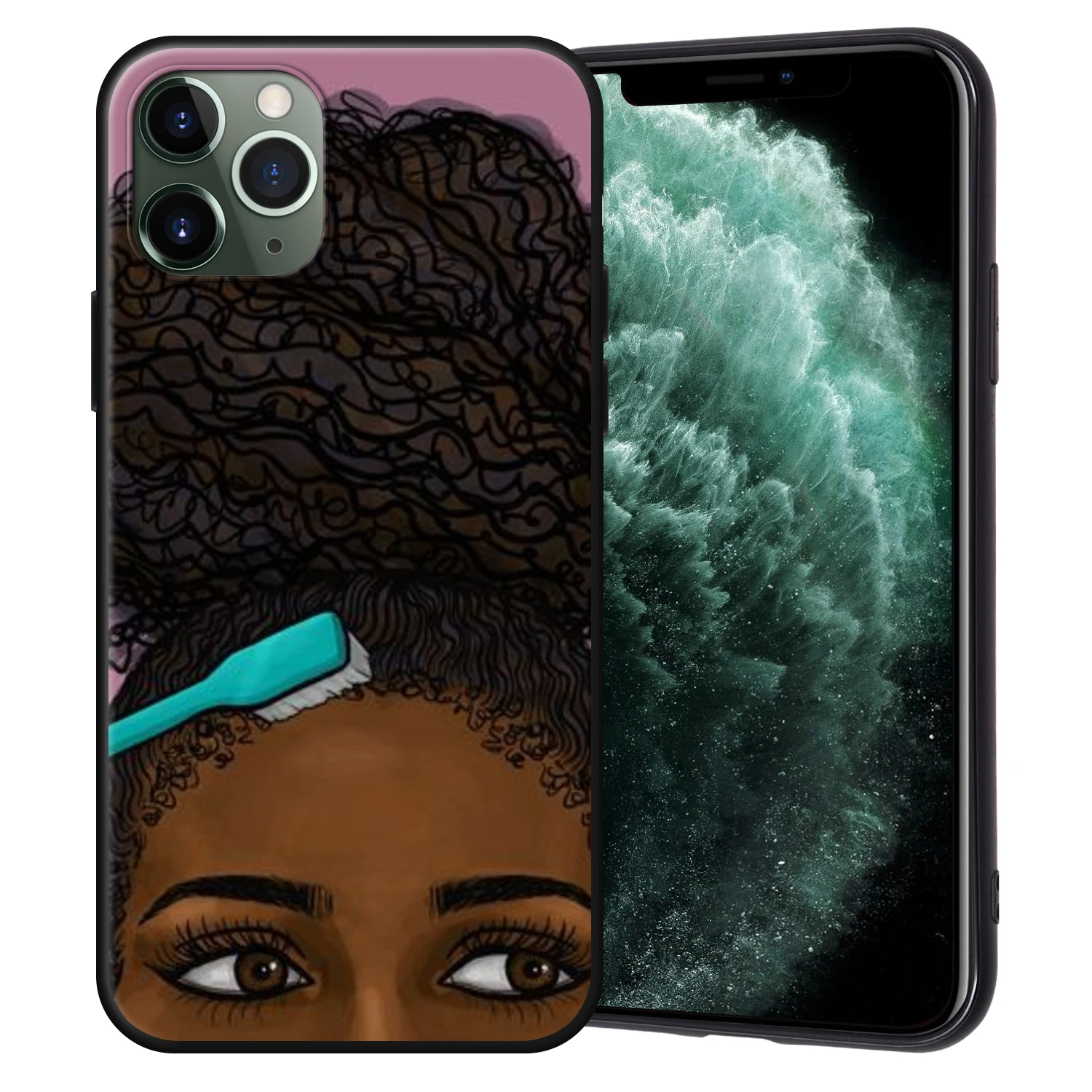 Чехол-накладка для iPhone 11 Pro Max, 7, 8, 6, 6S Plus, 5, 5S, SE, с изображением афро девушек, черного цвета