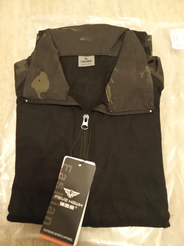 Это хорошая рубашка, но только если носить под жилетом. Рукава изготовлены из хорошего водоотталкивающего материала, но корпус из дешевой ткани. Размер XXL где-то между европейскими M и L.