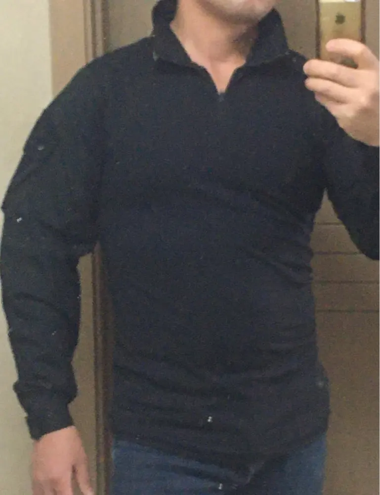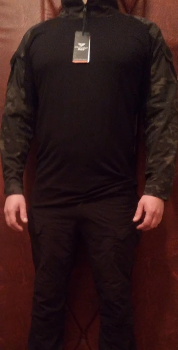 Тактическая футболка соответствует описанию. Я купил Размер L для 180 и 70 кг, и размер хорошо соответствует. Слишком плохо, есть плохой запах, поэтому я удалить звезду...