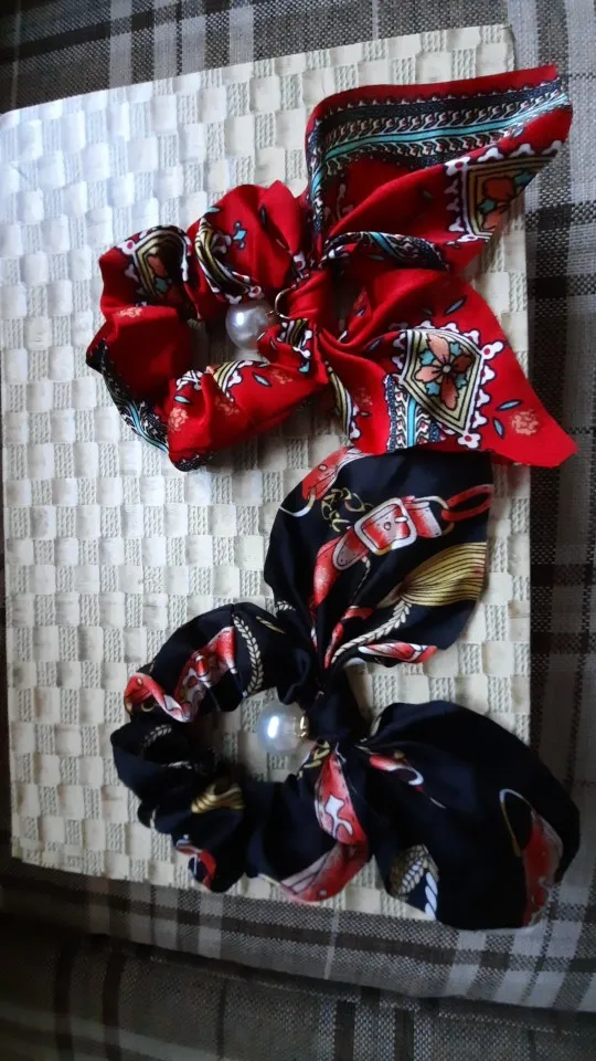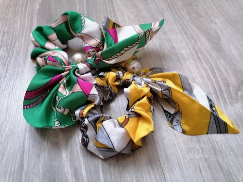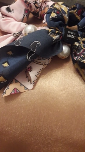 Великолепные резинки,выгледят очень презентабельно, дорого, сшиты очень качественно,нитки нигде не торчат, ткань плотная и приятная на ощупь, бусинка пришита аккуратно.Одна резинка правда немного отличается от заказанной, более тёмная,а я заказывала более белую, но не буду за это снимать звезду.В целом,заказом довольна, спасибо продавцу, буду заказывать ещё.