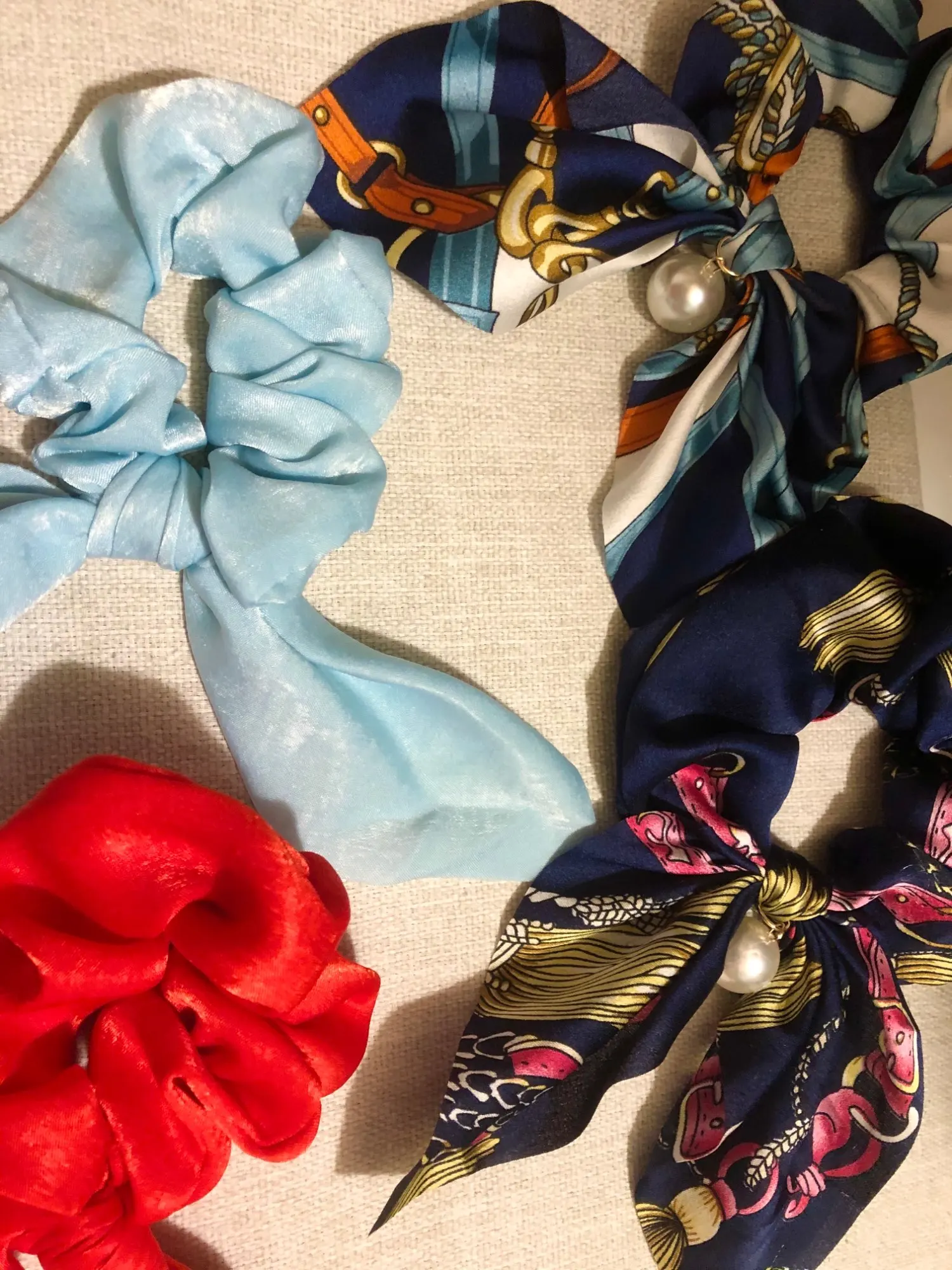 Резинки для волос женские, шифоновые, однотонные, с бантом