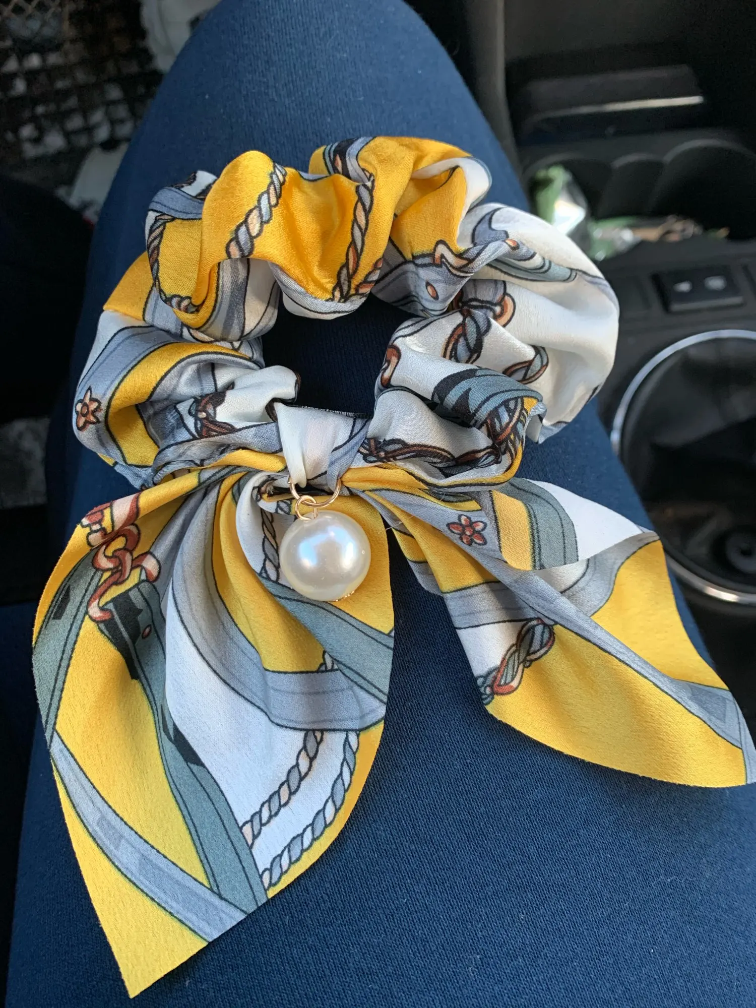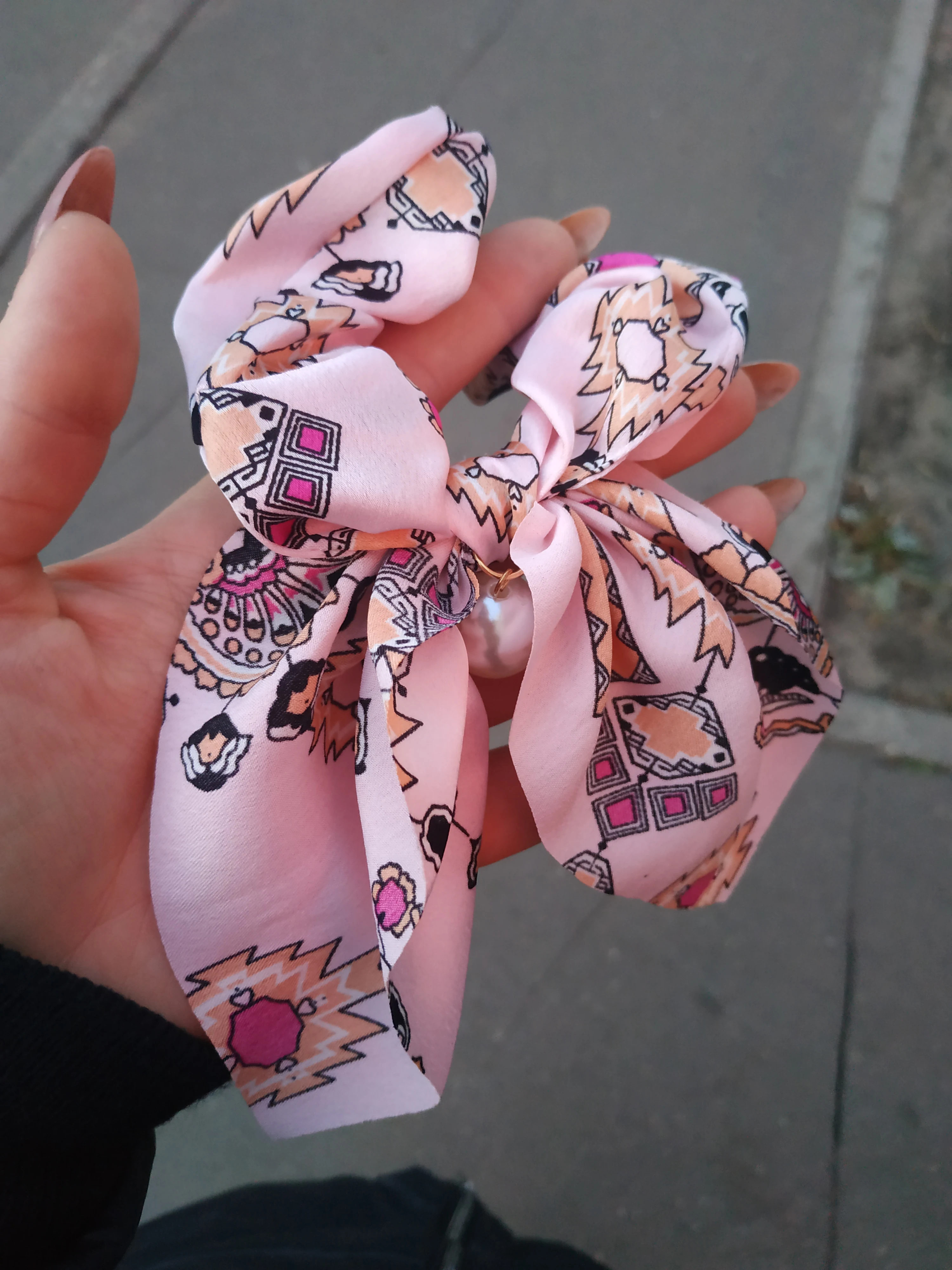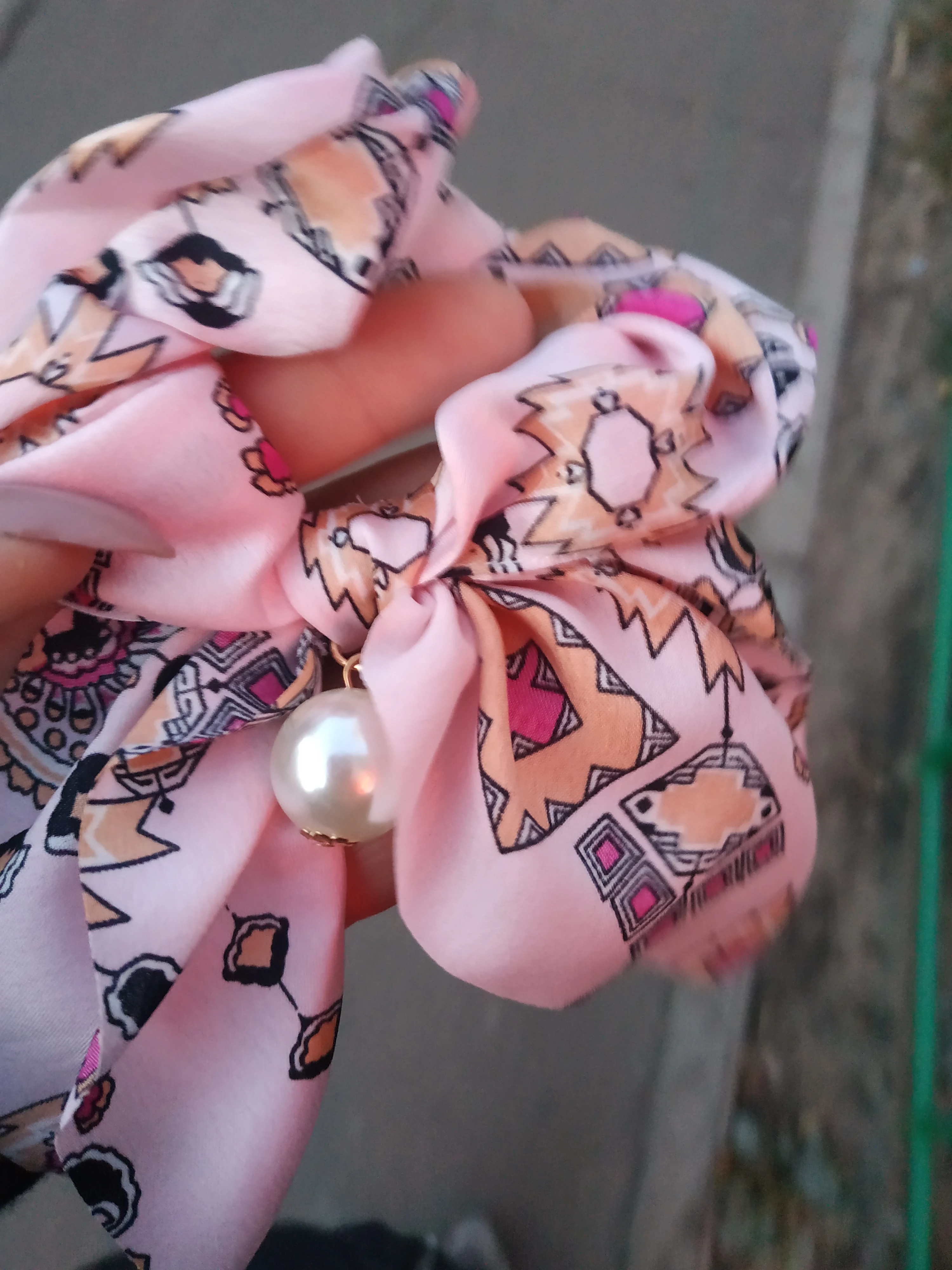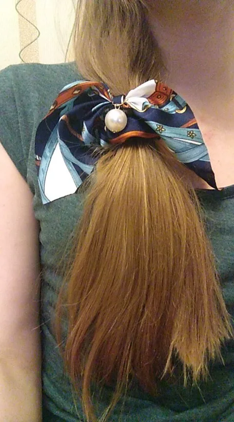 Отличная и очень красивая резинка. Хорошо держит волосы и симпатично смотрится. Есть жемчужная бусинка.