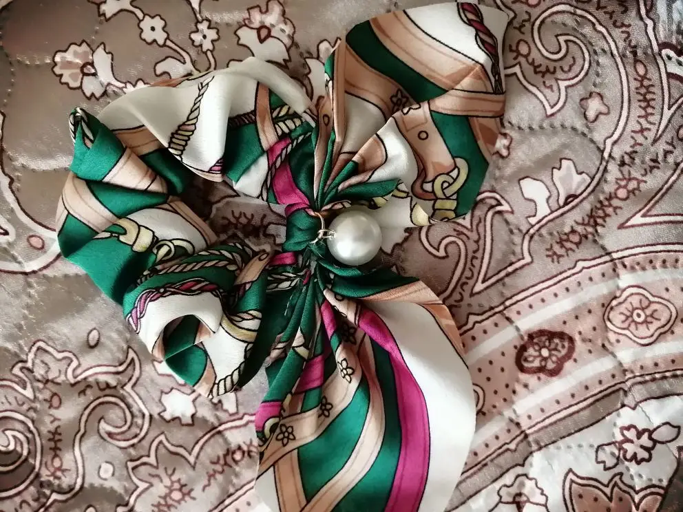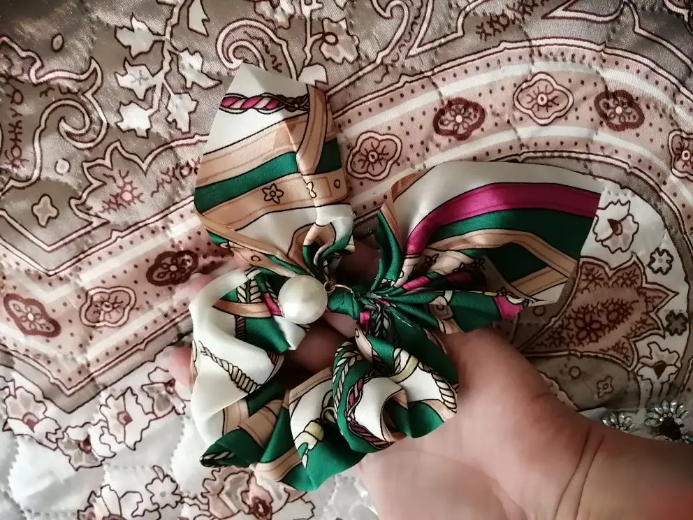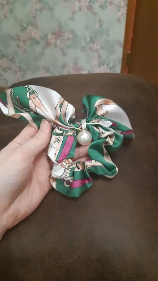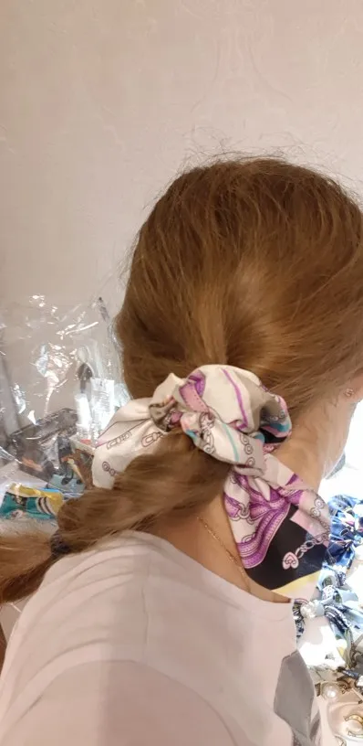 Отличная заколка. Резинка упругая. Держит хорошо. Из-за атласного материала с моих жестких прямых волос будет сползать. Аккуратная. Очень понравилась.