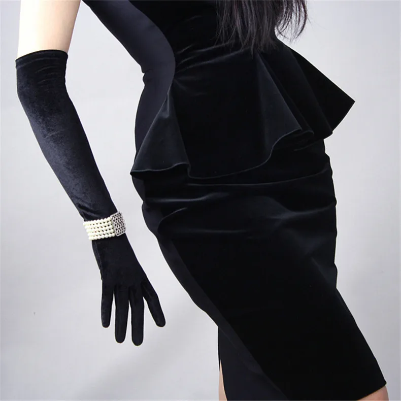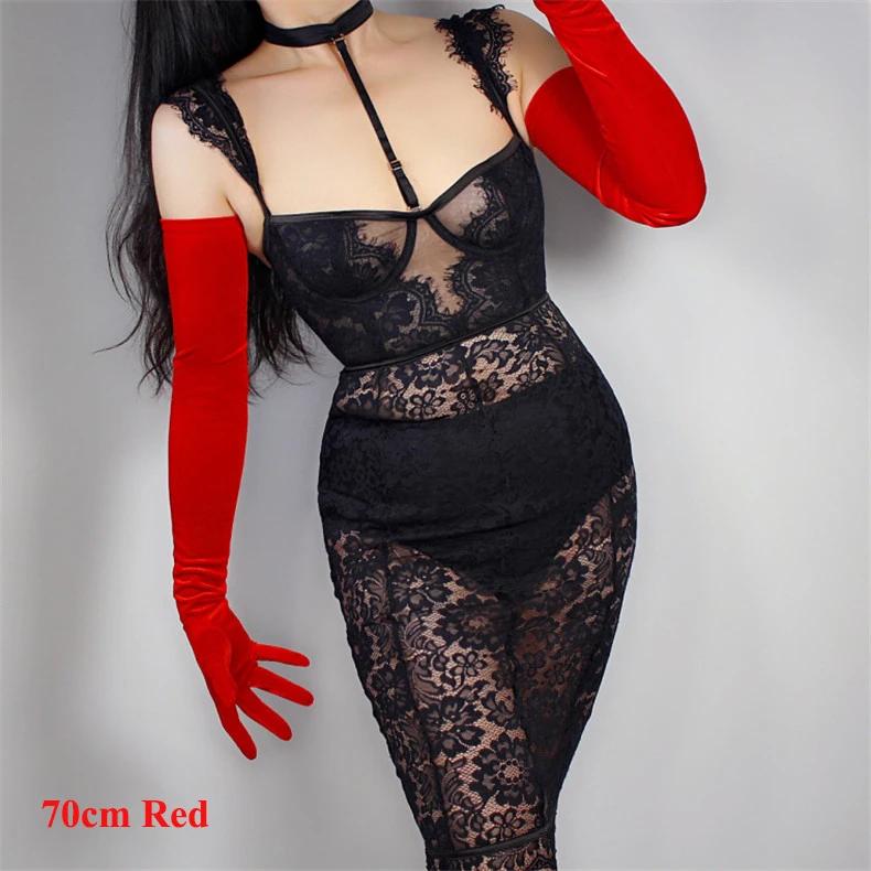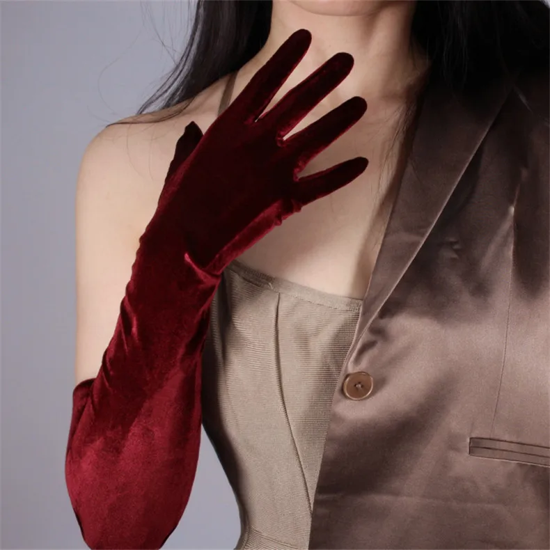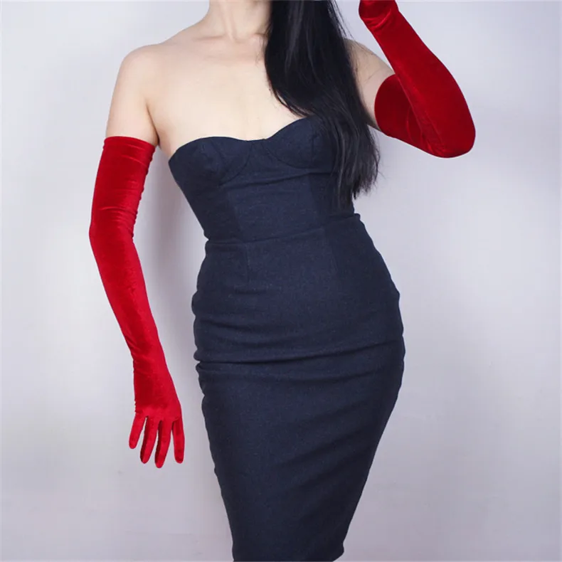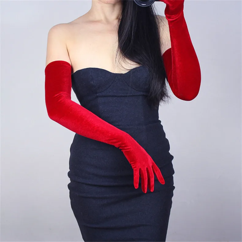 Бархатные перчатки 70 см удлиненные красные женские высокие эластичные бархатные золотые велюровые женские Вечерние перчатки WSR25