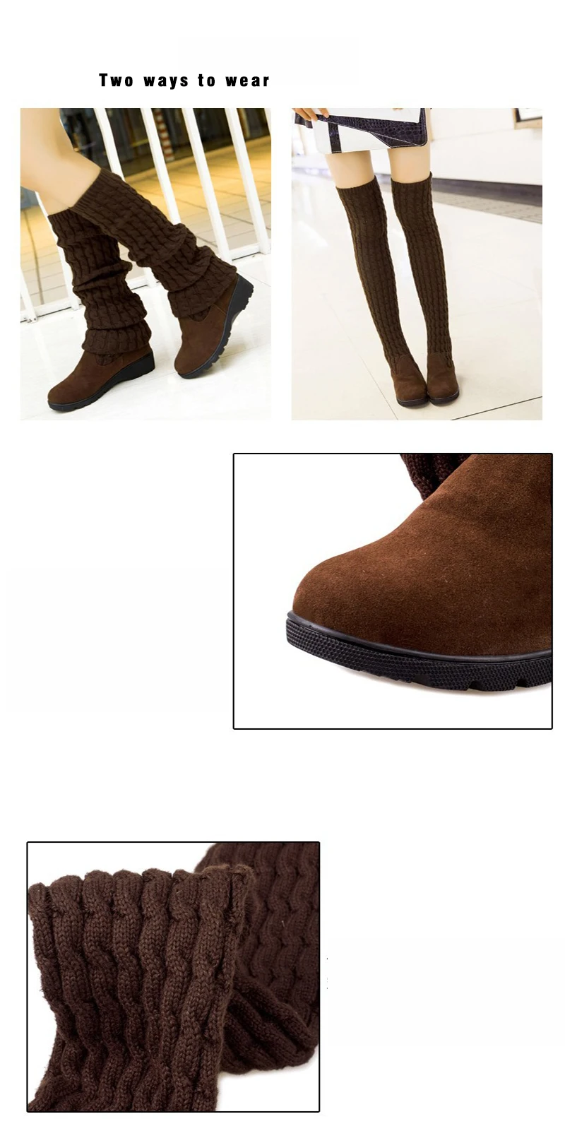 Женские сапоги, Осень-зима 2020, высокие сапоги до бедра для женщин, вязаные шерстяные длинные сапоги, женская обувь, женские сапоги-носки