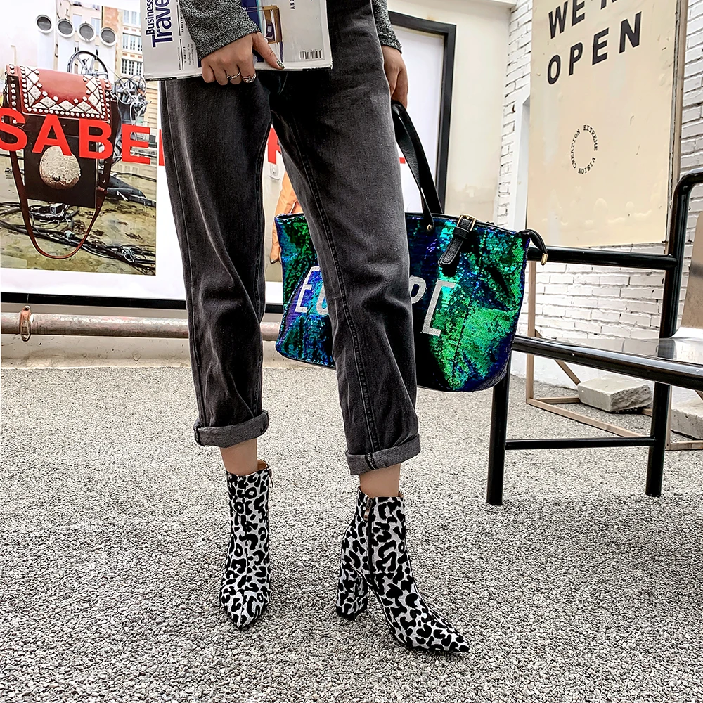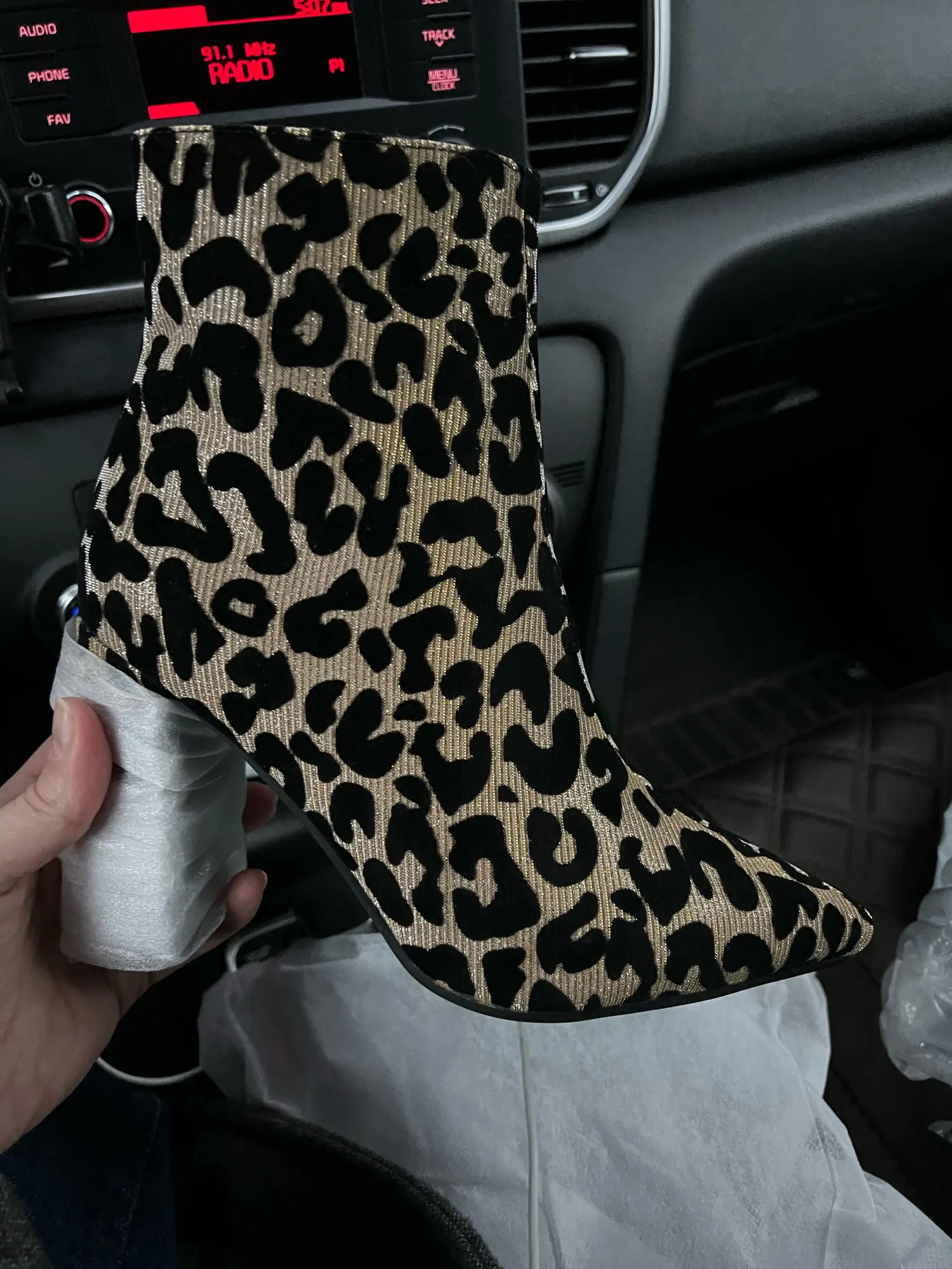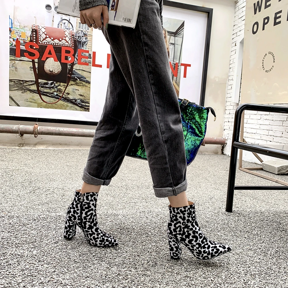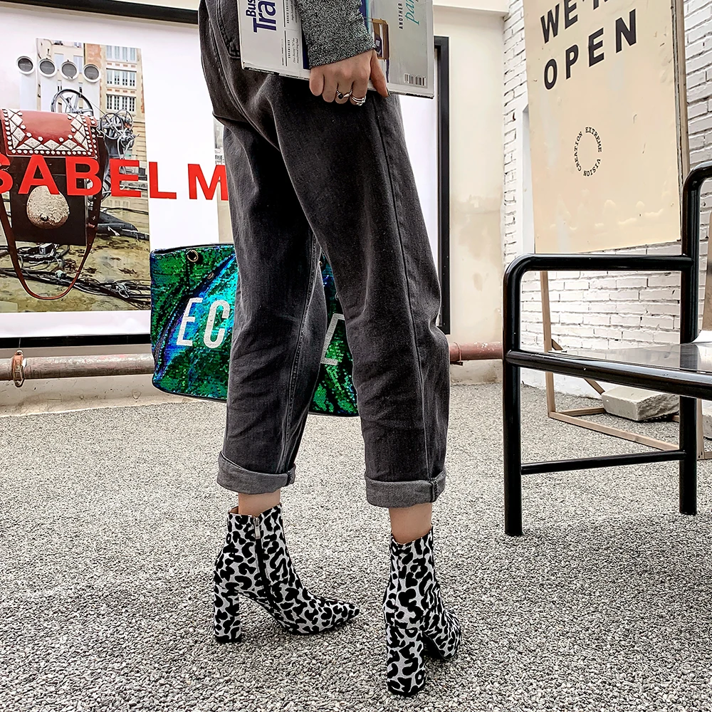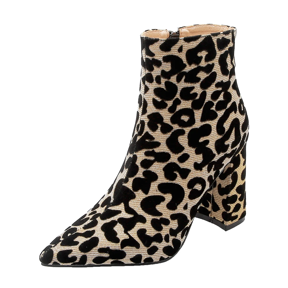 Ботильоны женские на массивном каблуке, леопардовые ботинки на плат...
