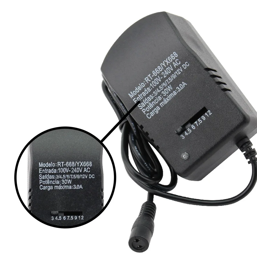 Спецификация:Выходное напряжение: 5AВходная мощность: 100- 240 В, переменный ток. 50-60 ГцВыходная мощность: 3,0/4,5/6,0/7,5/9,0/12 В постоянного токаВстроенный фильтр EMI класса BТекущий рейтинг: 3000 мА макс.