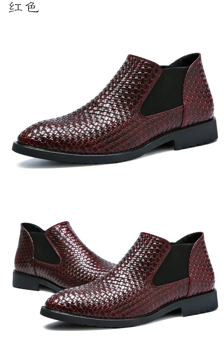Ботинки Челси мужские кожаные, без шнуровки, с плетеным узором