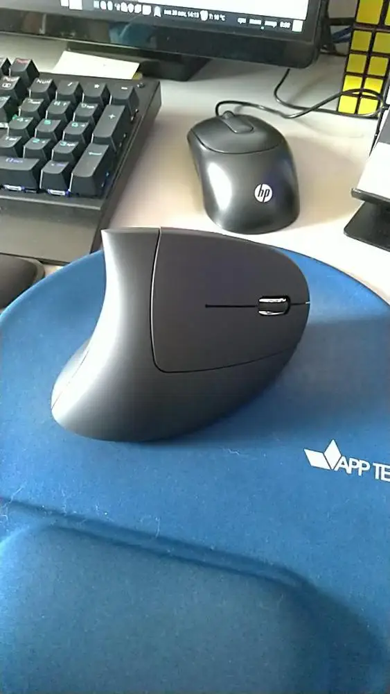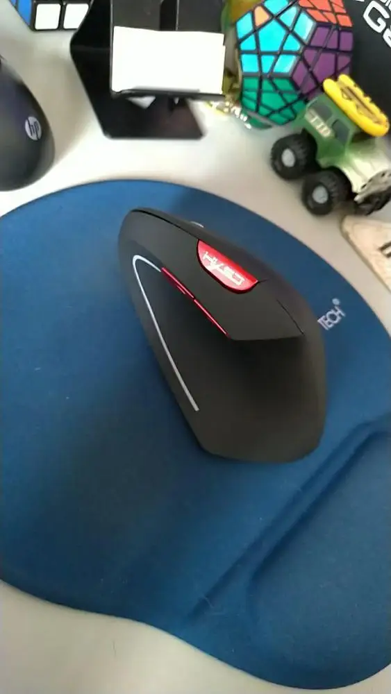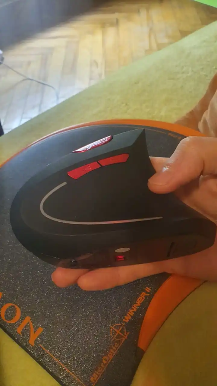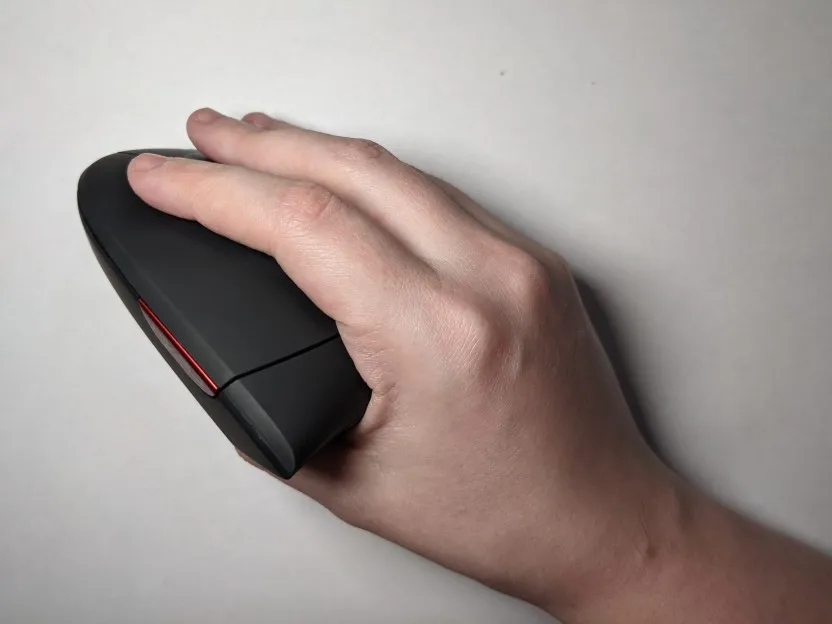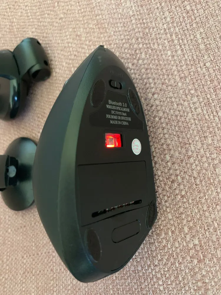 Мышь рабочая, в руке лежит приятно, выглядит симпатично, правильная вертикальная мышь. Качество хорошее, ничего не скрипит, колёсико прокручивается мягко и тихо. Обратите внимание, кнопки не беззвучные. Нажимать кнопки назад/вперёд мне, с моей небольшой рукой, неудобно, но они работают. Заряда хватает всего на 2-3 дня (!) (вероятно, виноваты два синих светодиода, которые приятно светят даже в спящем режиме), после этого нужно заряжать, это главный минус. Не рекомендую брать именно этот вариант, лучше взять на батарейках или более экономно использующую аккумулятор. В остальном мышь неплоха.