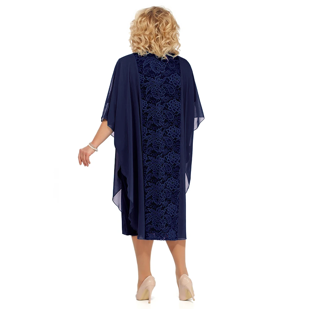 Распродажа, размера плюс, женское платье для матери невесты, Осень-зима, 2021, голубой Вечерние халат с рукавами летучая мышь, кружевной наряд, подарок на день рождения, для мамы