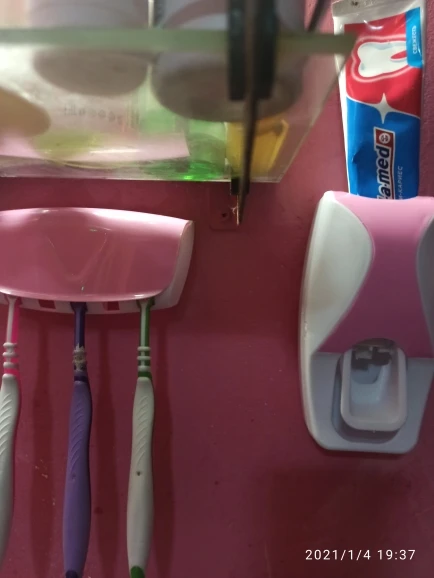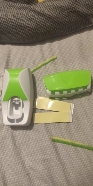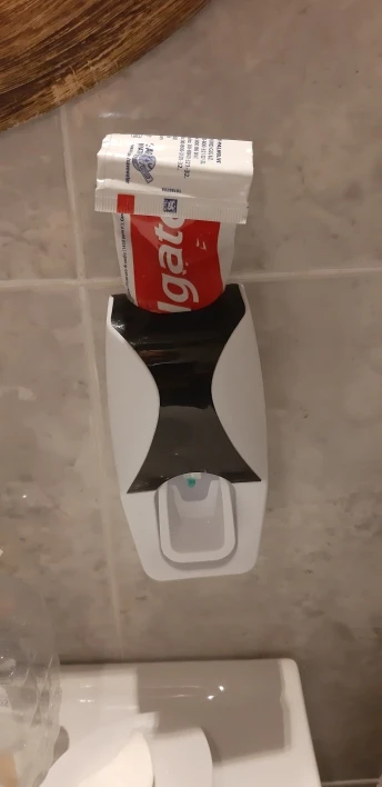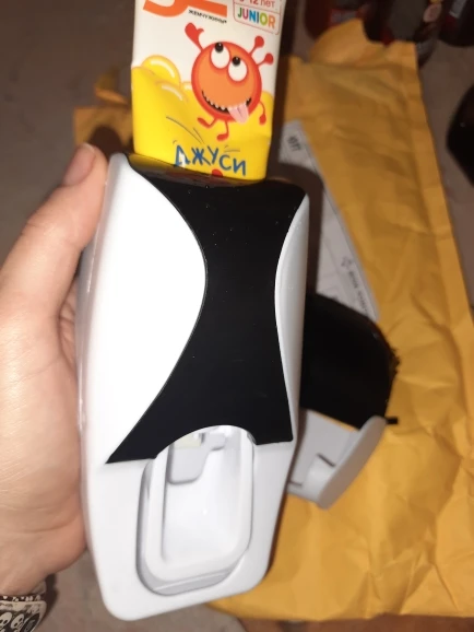 Занятная вещица диспенсер для пасты. Быстро все вкрутила, установила. Работает, но пасты выдавливает маловато, хотя мне хватает. На фото выглядит мощнее. Пришло с поцарапаной поверхностью, какой-то вид совсем дешманский и вымазаный во что-то чёрное. Названия на диспенсер нет, просто чёрные поверхности. Коробка была с виду такой, как-будто ею играли в футбол, но товар цел. Нравится те, что освободила место на полочке, для детей интересно и зубные щётки удобно висят. Раньше в стаканчике плесневели. Спасибо за товар.