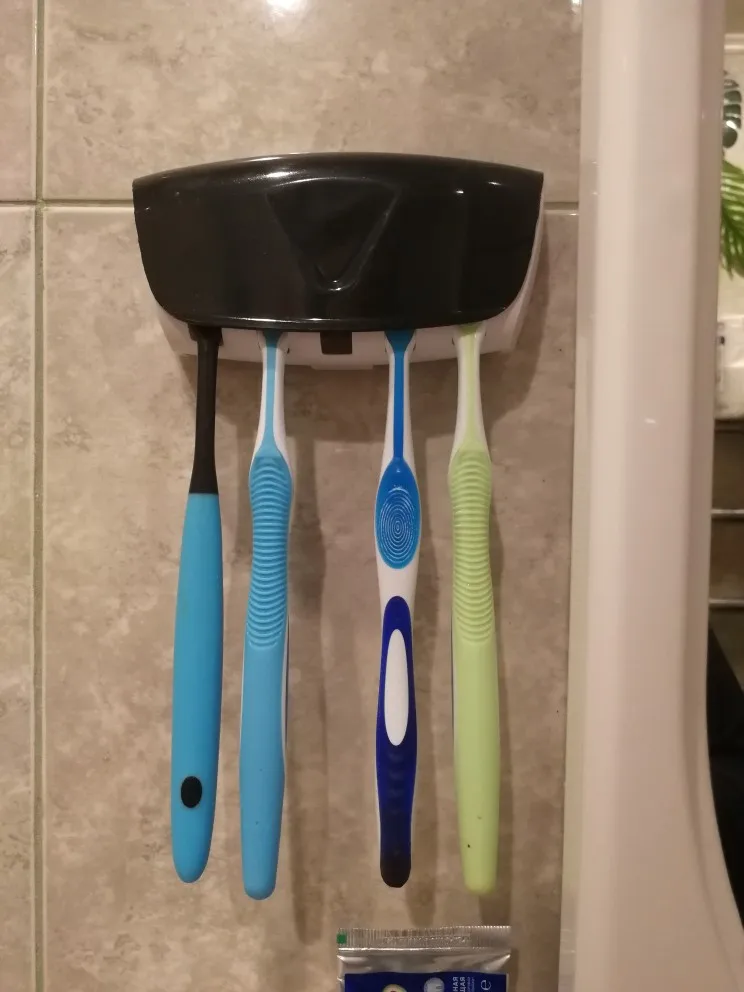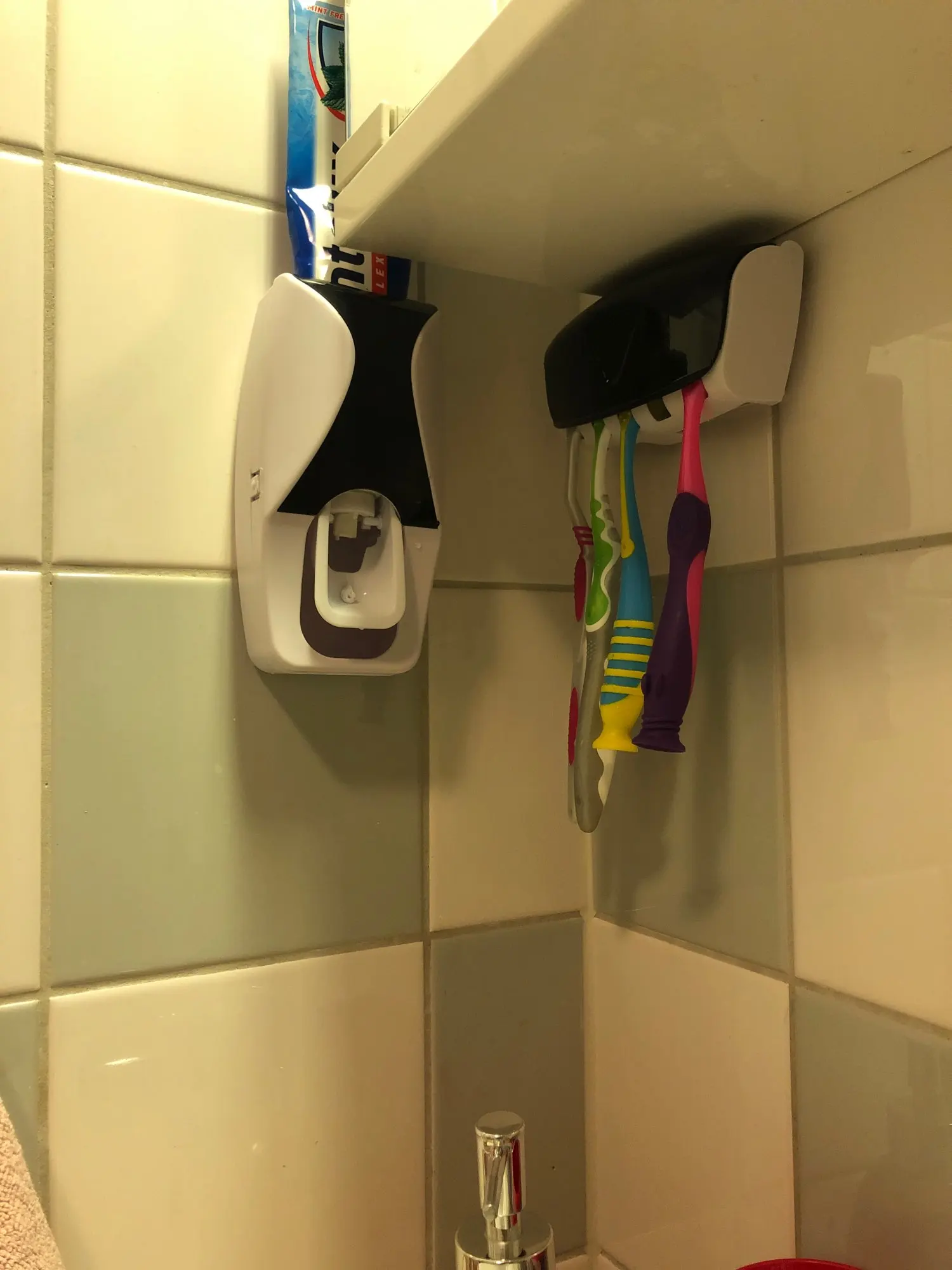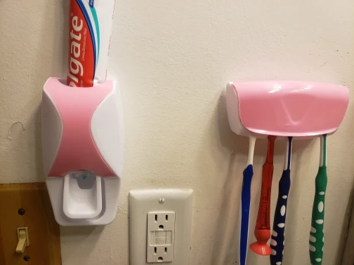Нужная вещь не надо тюбик в руки брать висит себе только щёткой надави и все можно чистить зубы