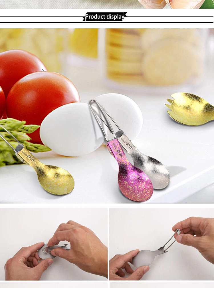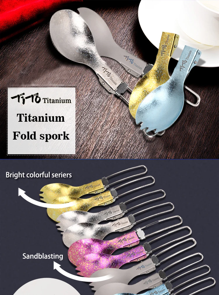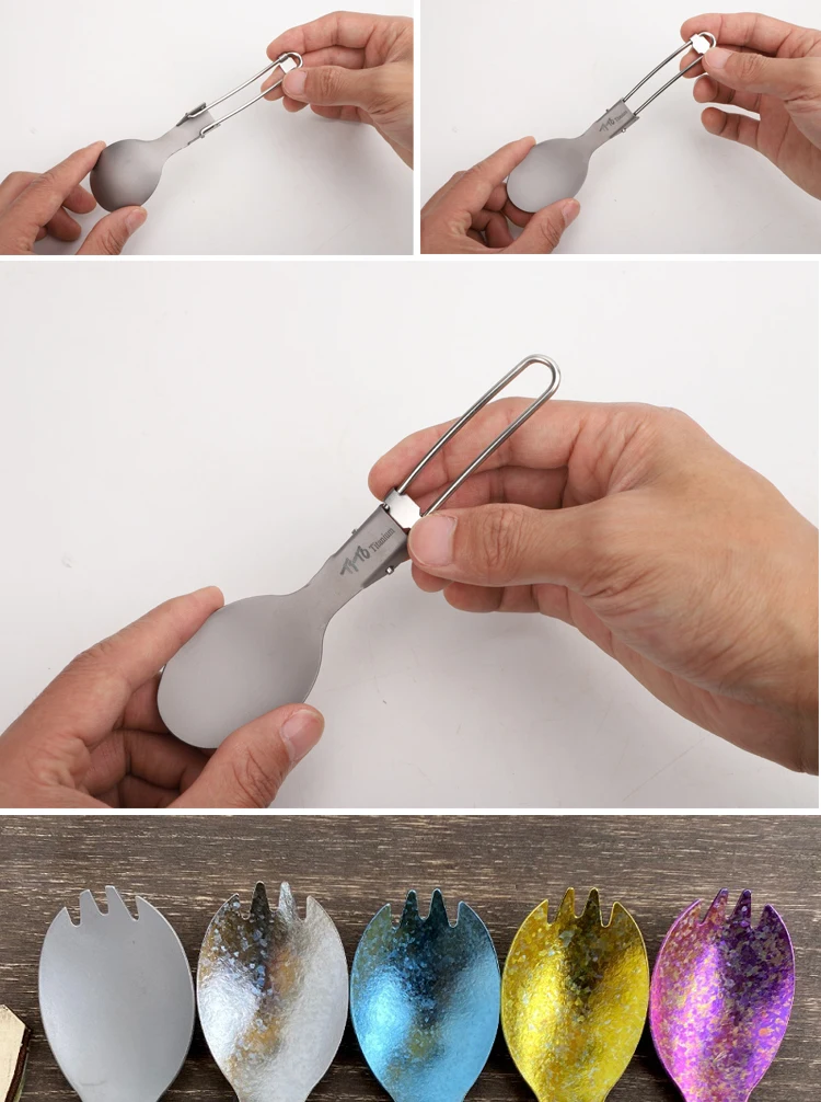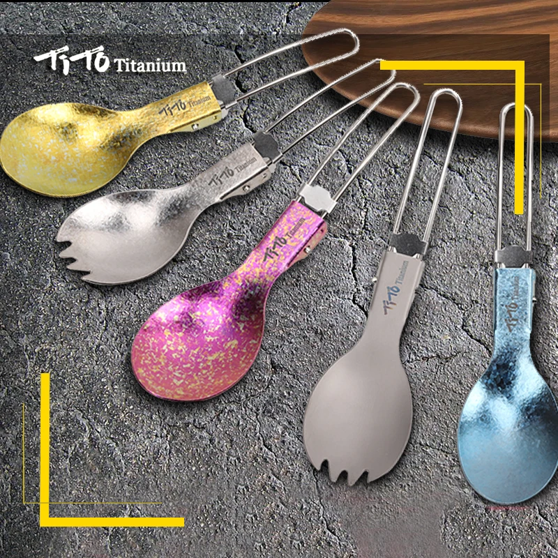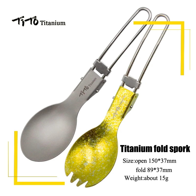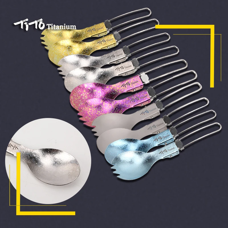 TiTo титан складная ложка-Вилка портативный Открытый Кемпинг столовые приборы Путешествия Посуда Пикник походы вилка ложка всего 15 г