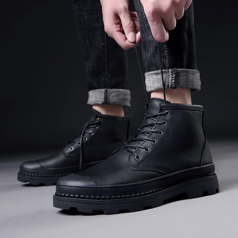 Мужская кожаная обувь с высоким берцем, брендовая повседневная обув...