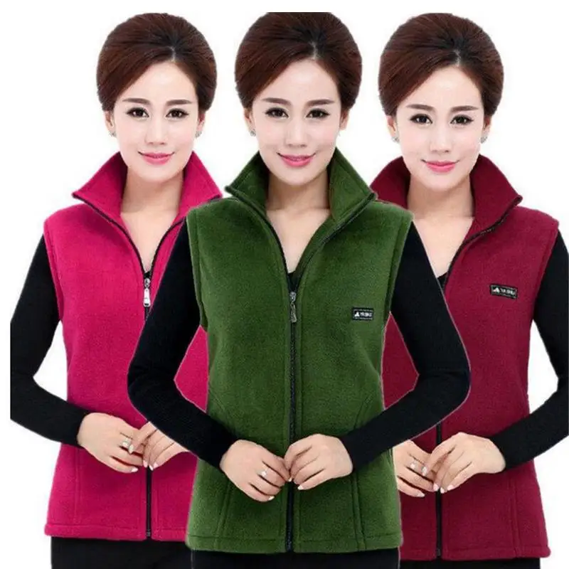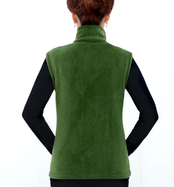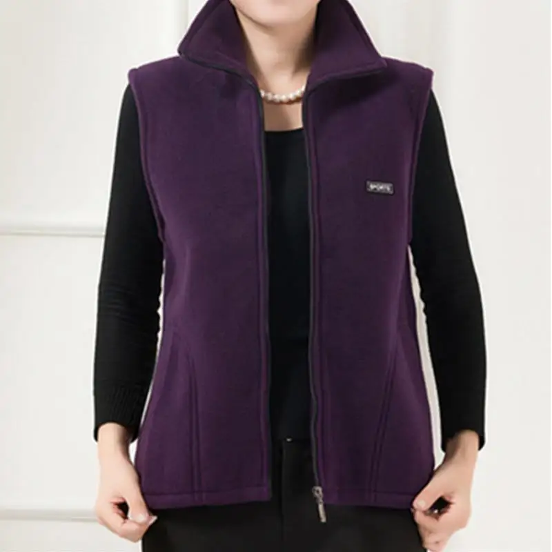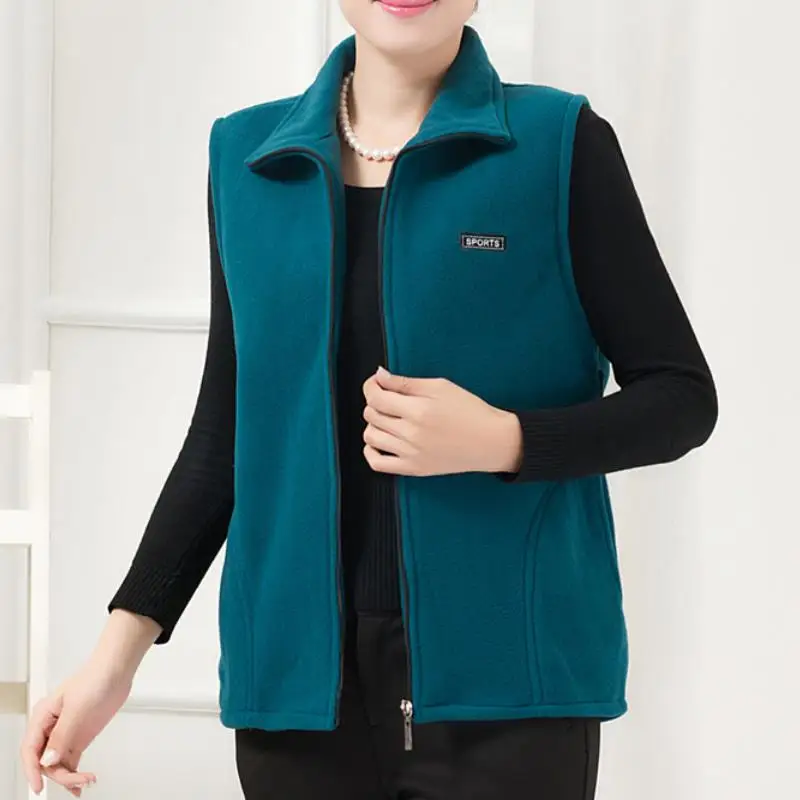 Женский однотонный жилет на молнии, Осенний флисовый Повседневный жилет с воротником-стойкой без рукавов
