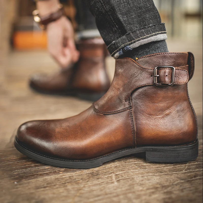 Ботинки Челси ZFTL мужские из натуральной кожи, ботильоны на молнии, в стиле ретро, ручная работа, весна-осень 156